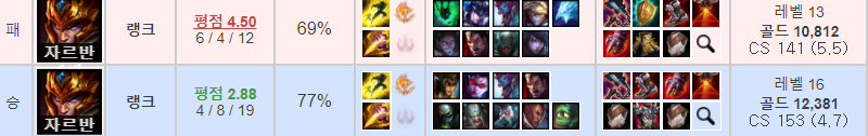 초반에 2데스 이상 박아도 무지성 음파 맞추기만 한다면 게임 내에서 변수를 만드는 리신 정글 밴 했다는 가정 하에 자르반이 너프 전 신짜오만큼 효율이 나오는 것 같네요.
