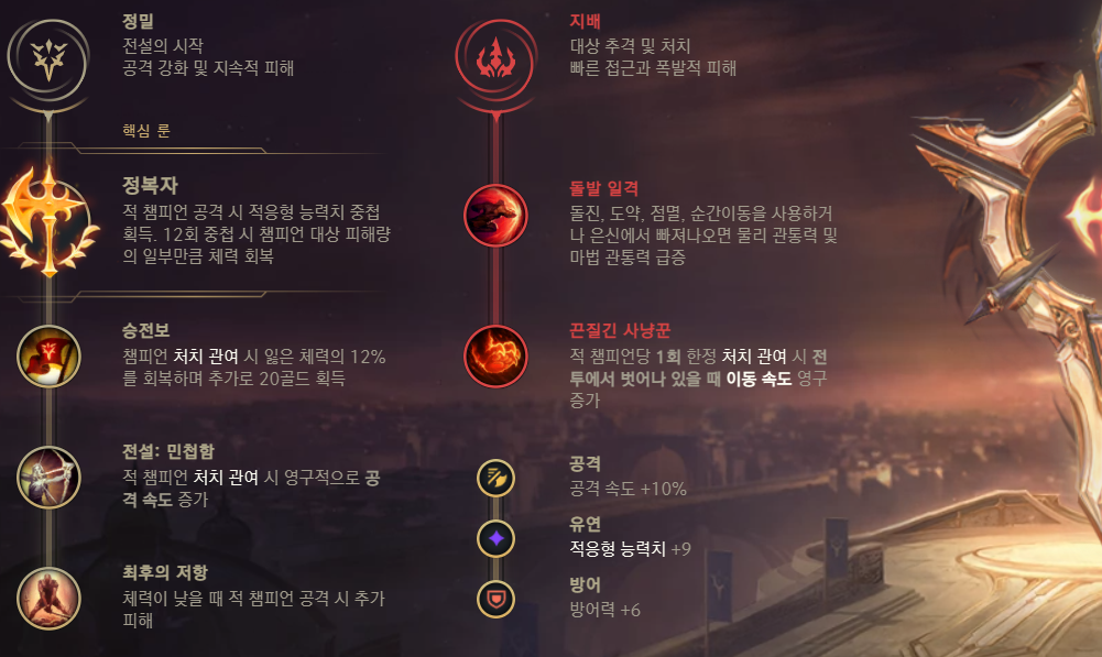 핵심룬 정밀 사용한다면 정복자하고 다이브용 승전보가 필요하긴 하니까