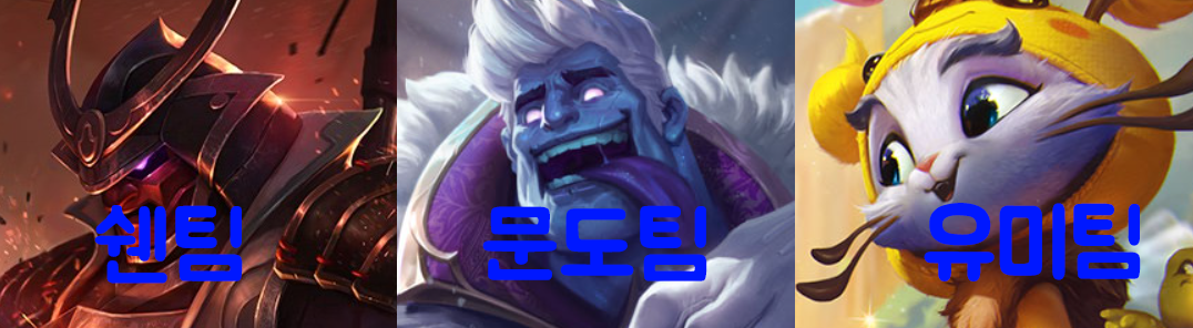 문도팀, 쉔팀, 유미팀(가칭, 실존하면 연관 없음) 등 대리랭크를 업으로 하는 유저들이 있는 곳을 (챔피언+팀)이름으로 짓는 것을 몇 롤 유저들은 보기도 했을 겁니다.