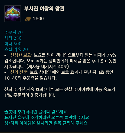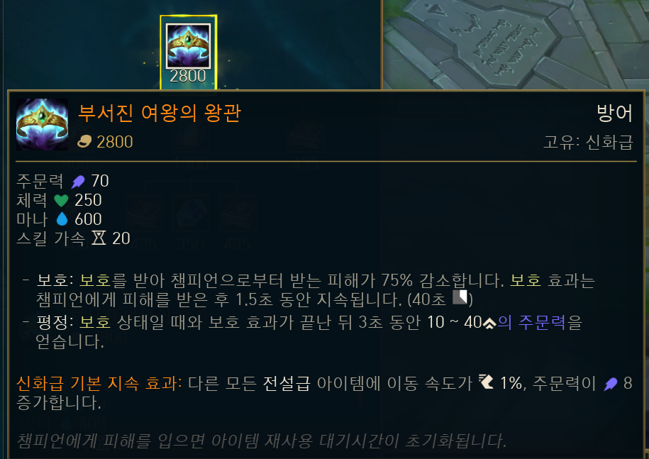 이와 더불어 부서진 여왕의 왕관이라는 말도 안 되게 좋은 아이템이 나왔습니다.
