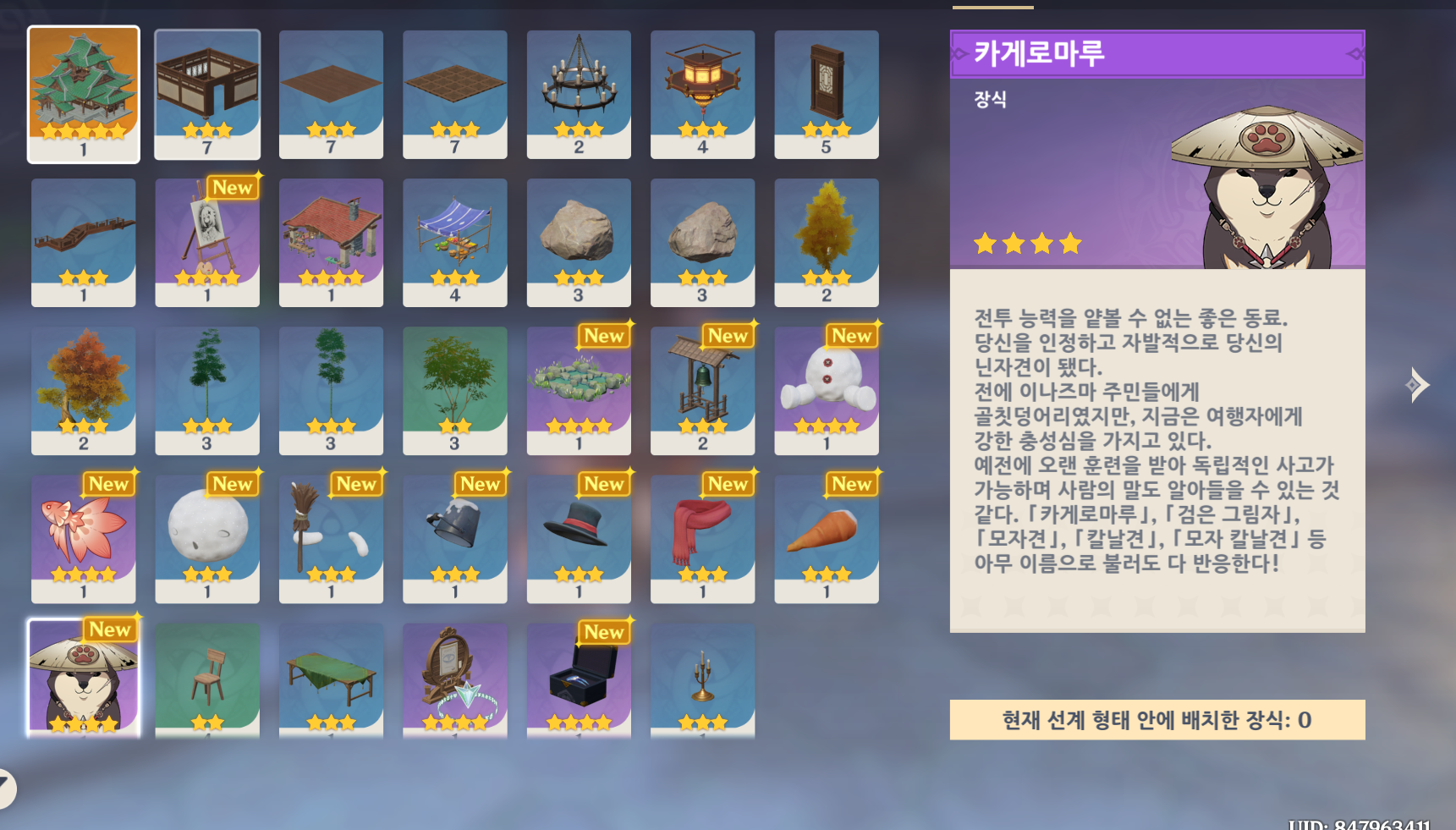 산고에게 지금까지의 일을 설명하고 전투 능력을 얕볼 수 없는 닌자견, 카게로마루를 하우징 보상으로 획득합니다.