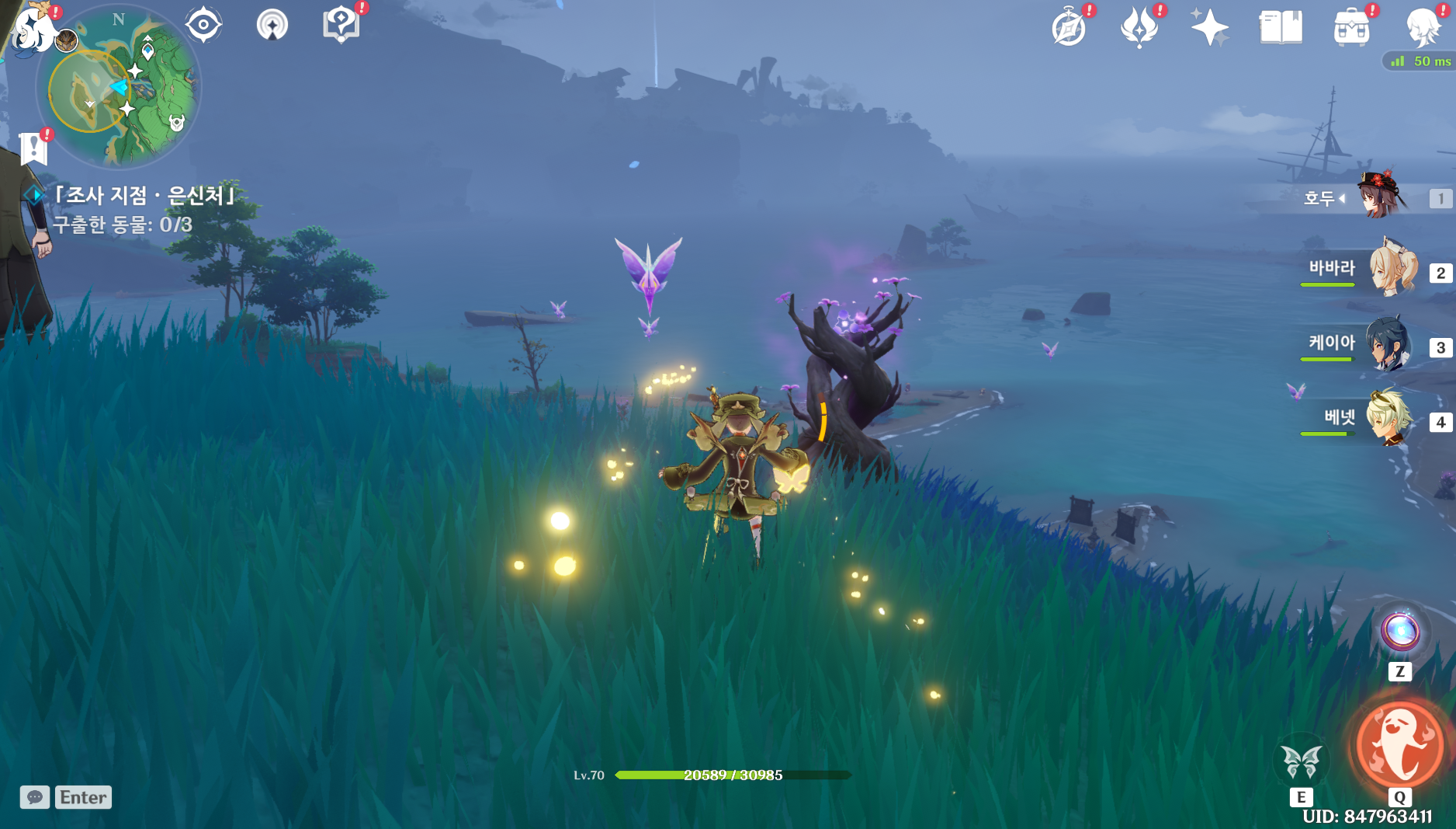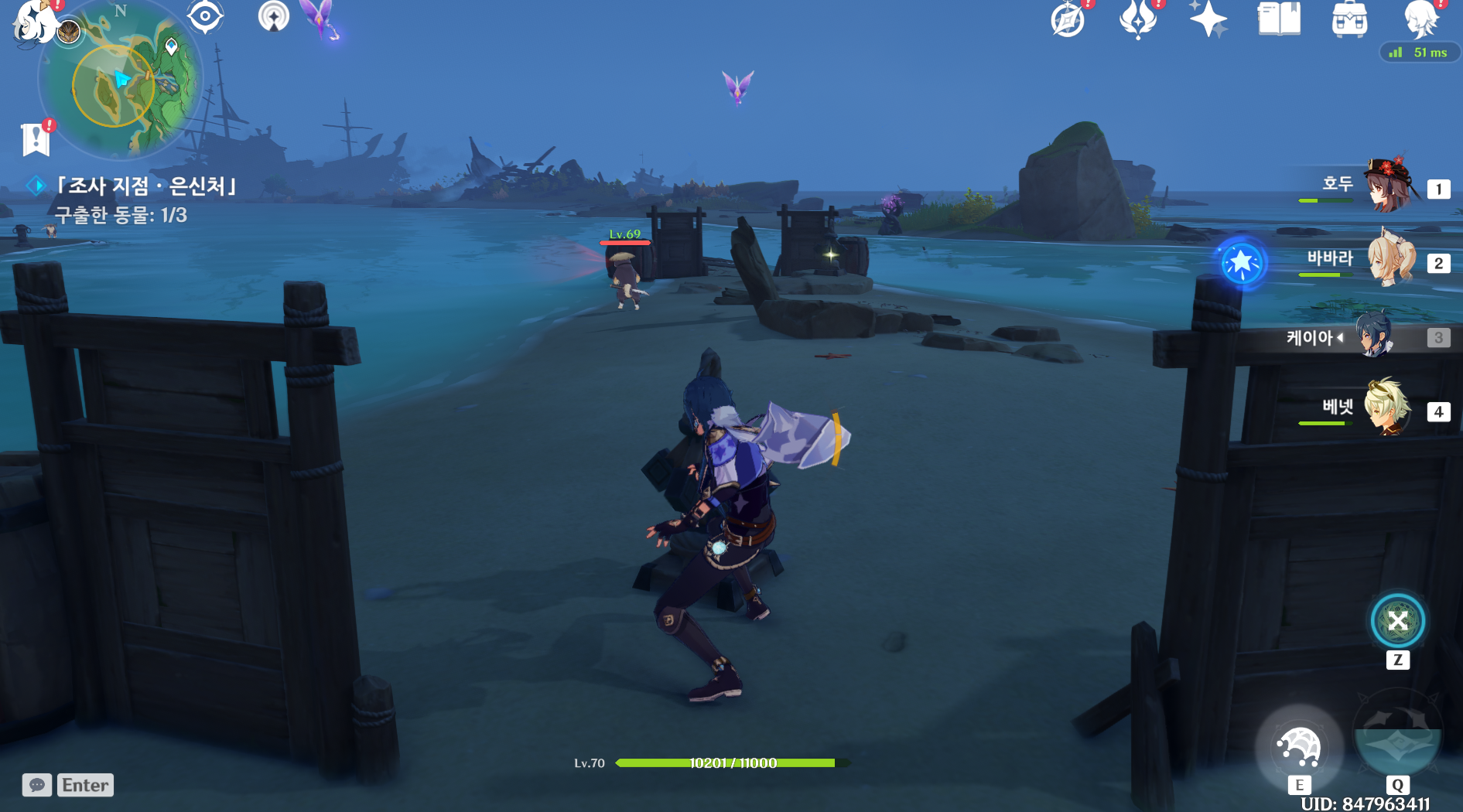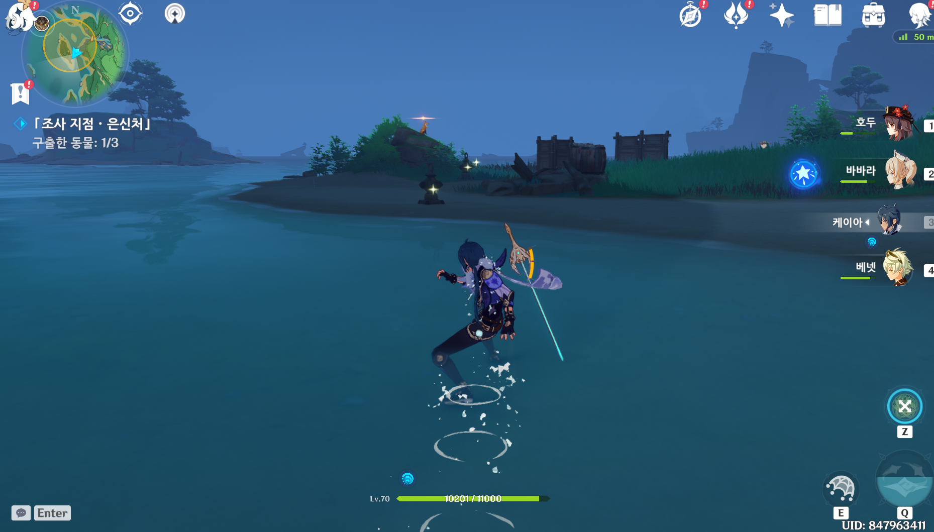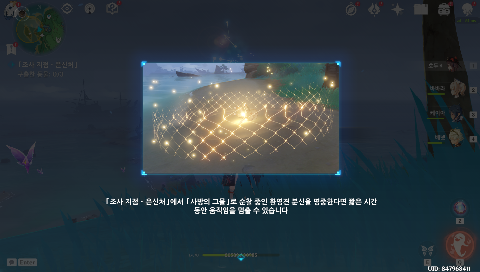 사용 아이템을 그물로 바꾸고 시작하는 게 수월합니다.