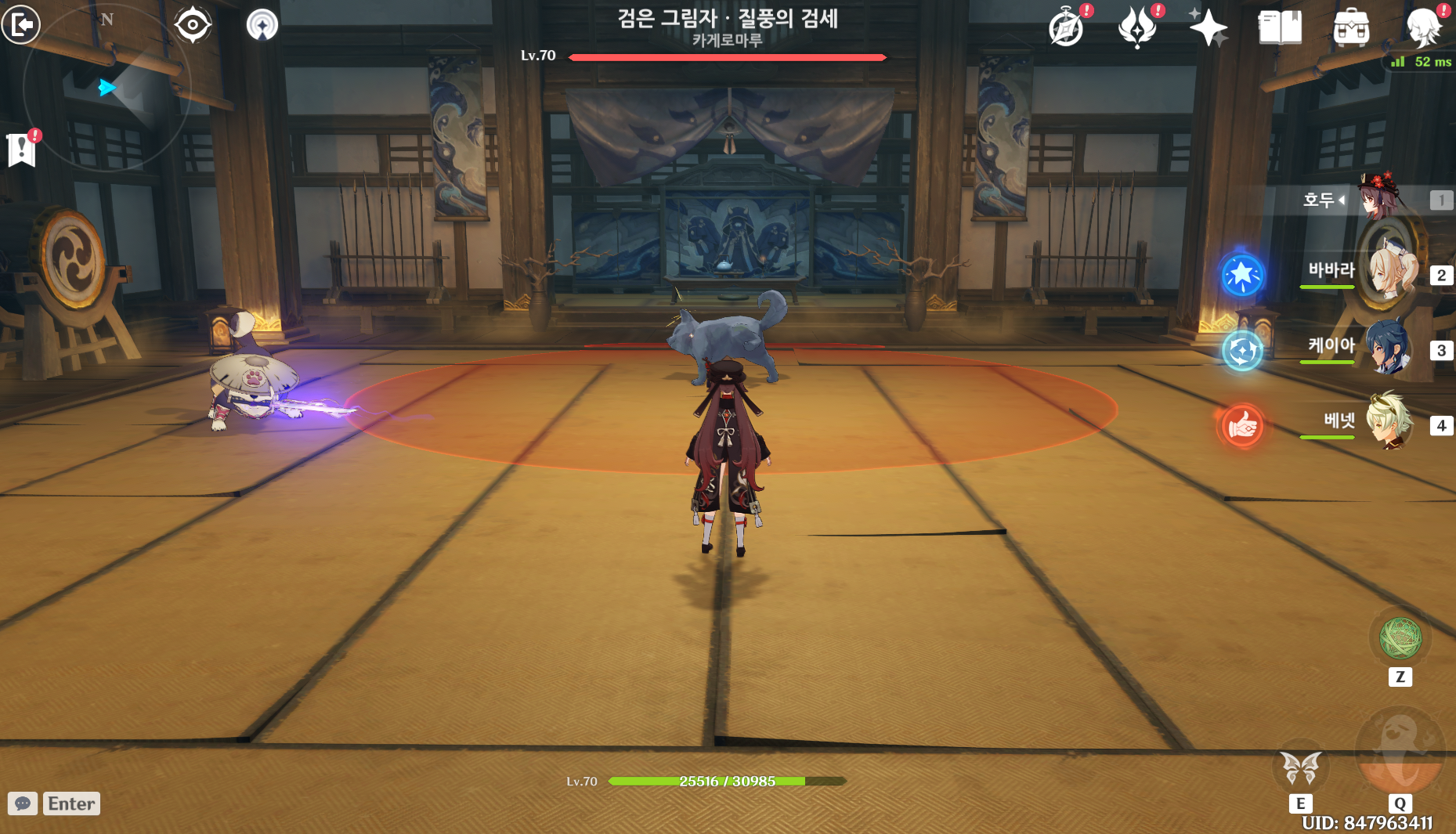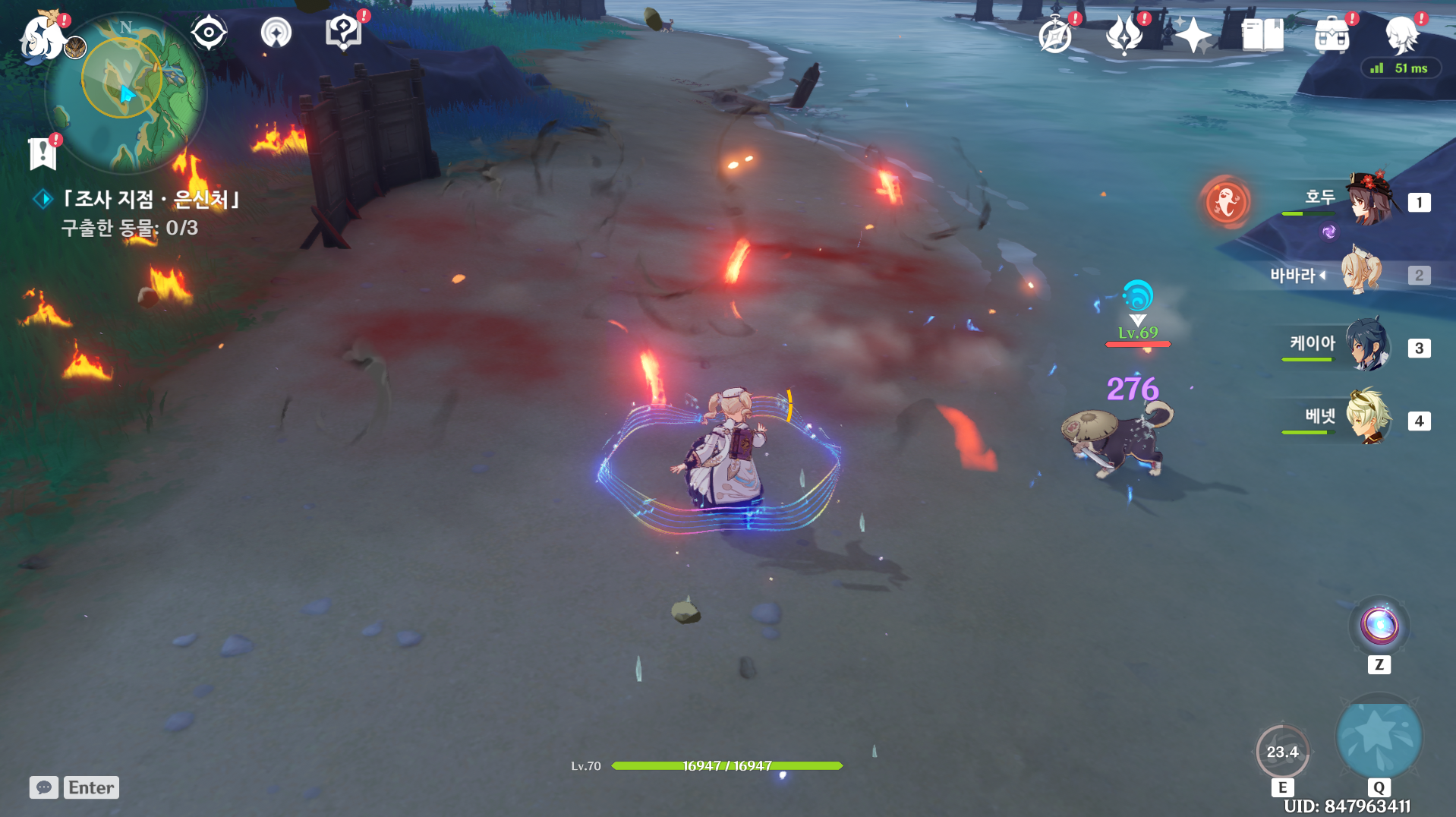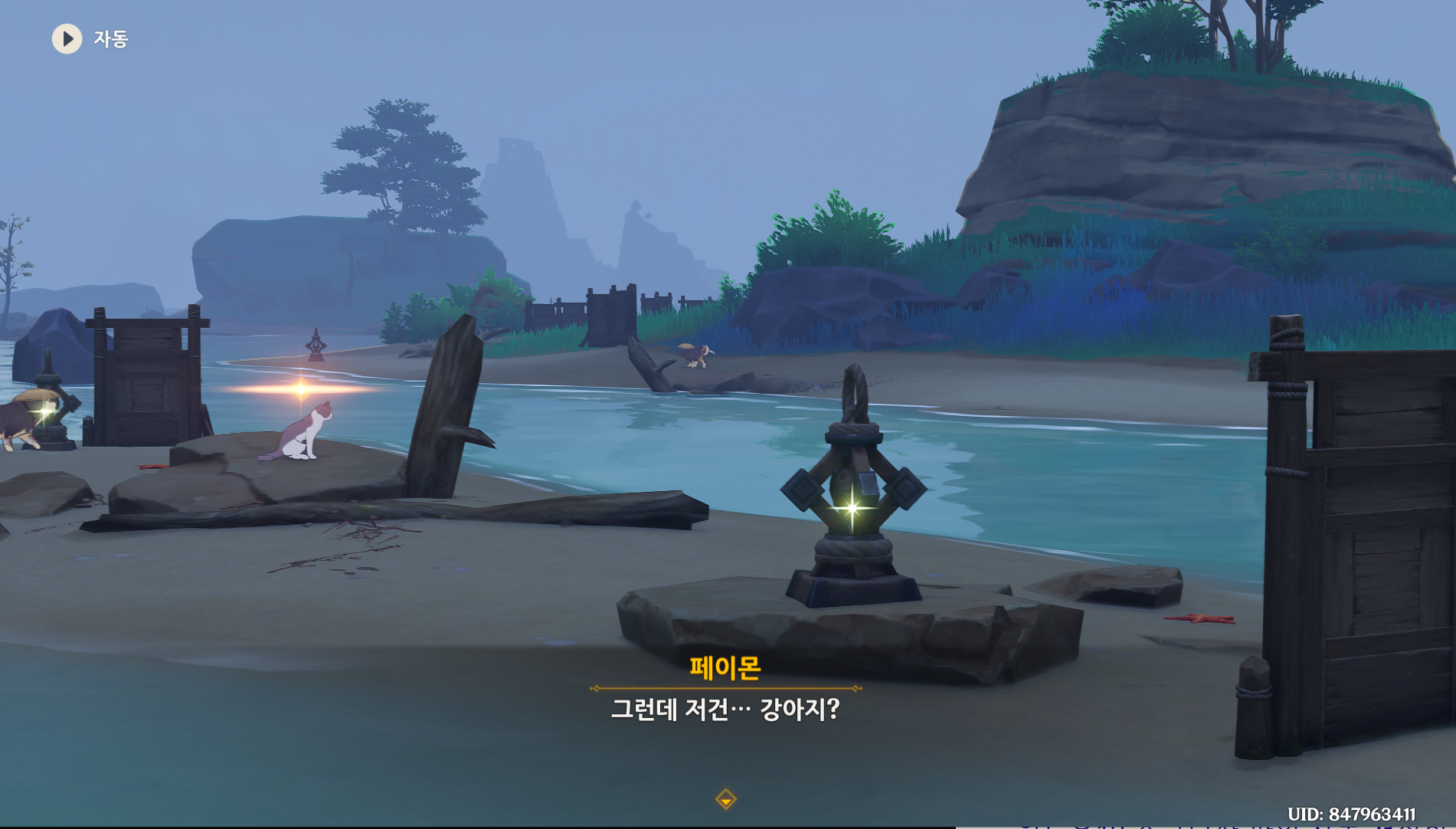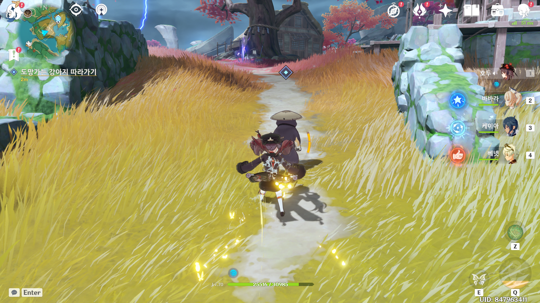 검은 그림자 강아지를 피해 구출해야 하는데 걸리면 무지성 번개 원소 공격함.