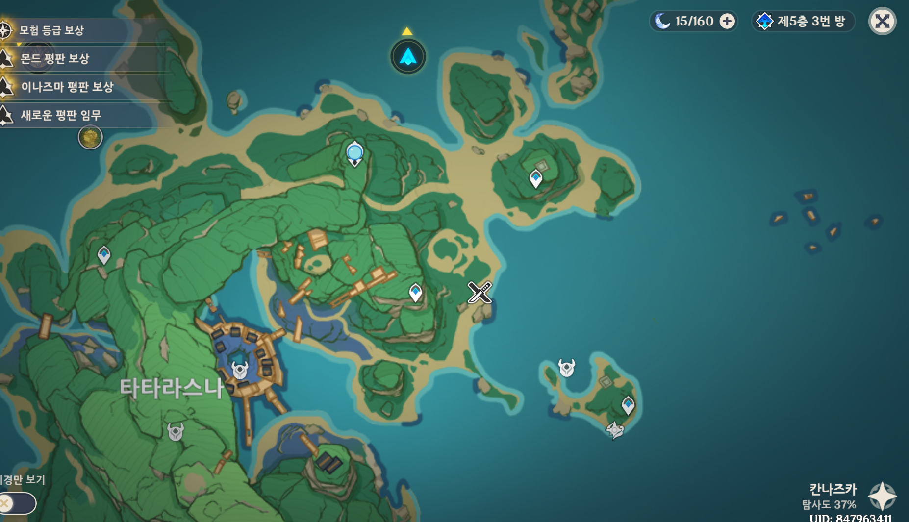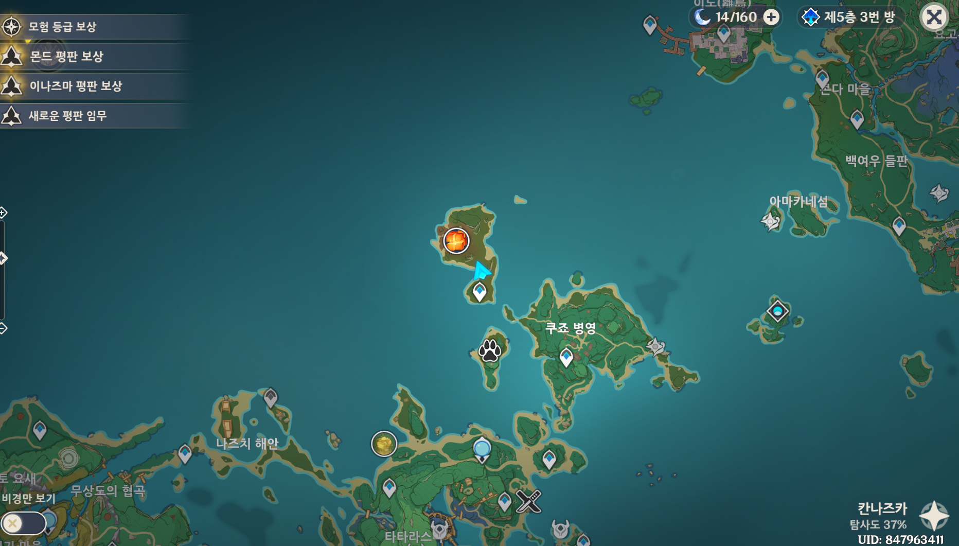 타타라스나로 이동하고 지점에 가기 전에 이나즈마에서 몇 없는 단순한 선령 기믹 깨고 진귀한 보물 상자 얻고, 우인단 메이 처치하고 조사지점에 합류