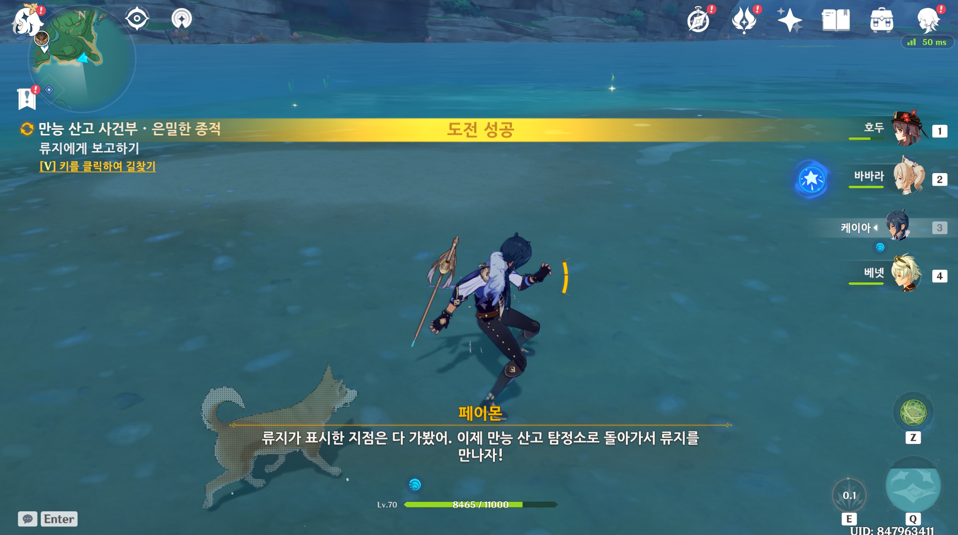 다음 임무를 진행하기 위해서는 이튿날 오전 6시~18시 사이에 다시 류지에게 대화를 걸어야 함.
