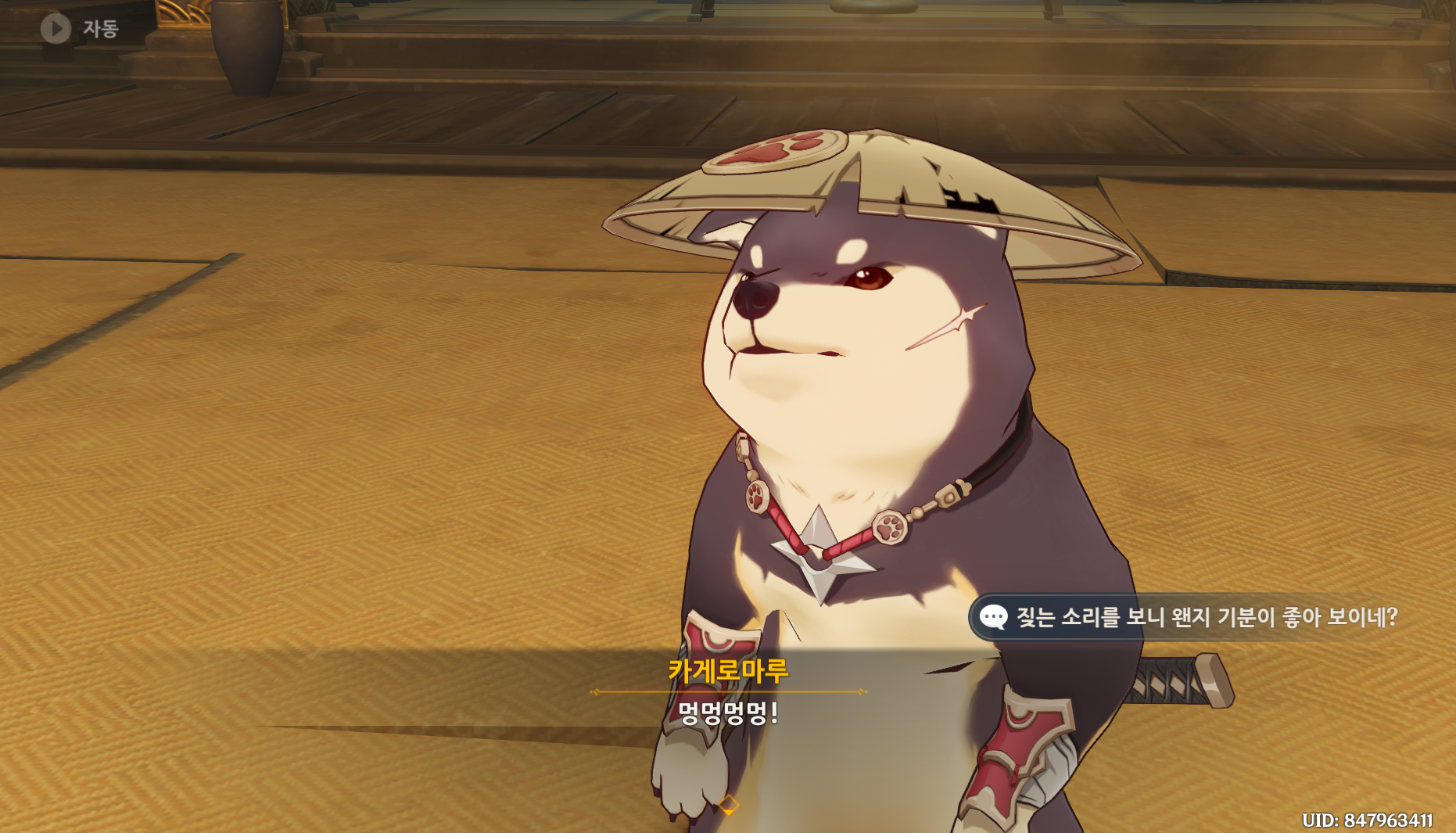 아마도 계약하는 방법은 카게로마루와 전투에서 이기게 되면 멍멍멍멍! 하고 따르는 것 같네요.