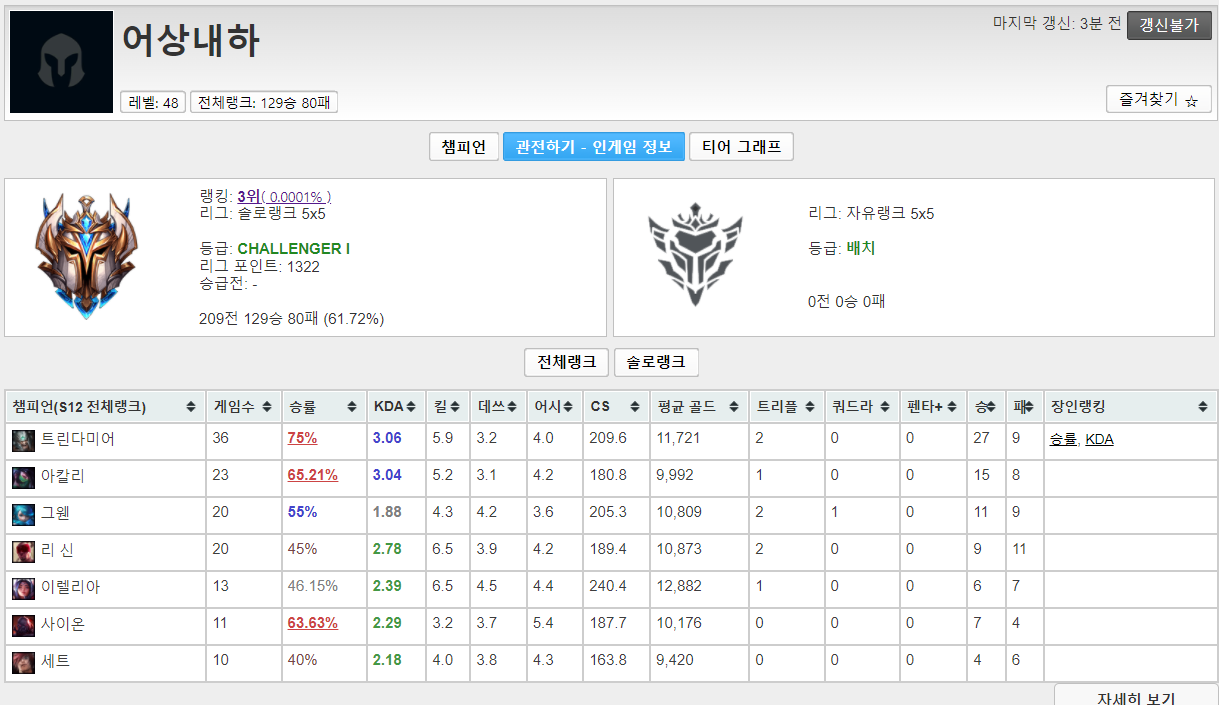 또한 현 상위권에서 솔랭하는 유저들도 핑 40~70임을 감안하고 다른 서버 30찍고 배치고사 평범하게 혼자 돌리고 게임해본다면, 한국 서버에서 트롤 만나는 일이 정말 많고, 쾌적하게 솔랭하려면 다른 서버에서 하는 것도 나쁘지 않다는 것을 많은 유저들이 알았으면 좋겠습니다.