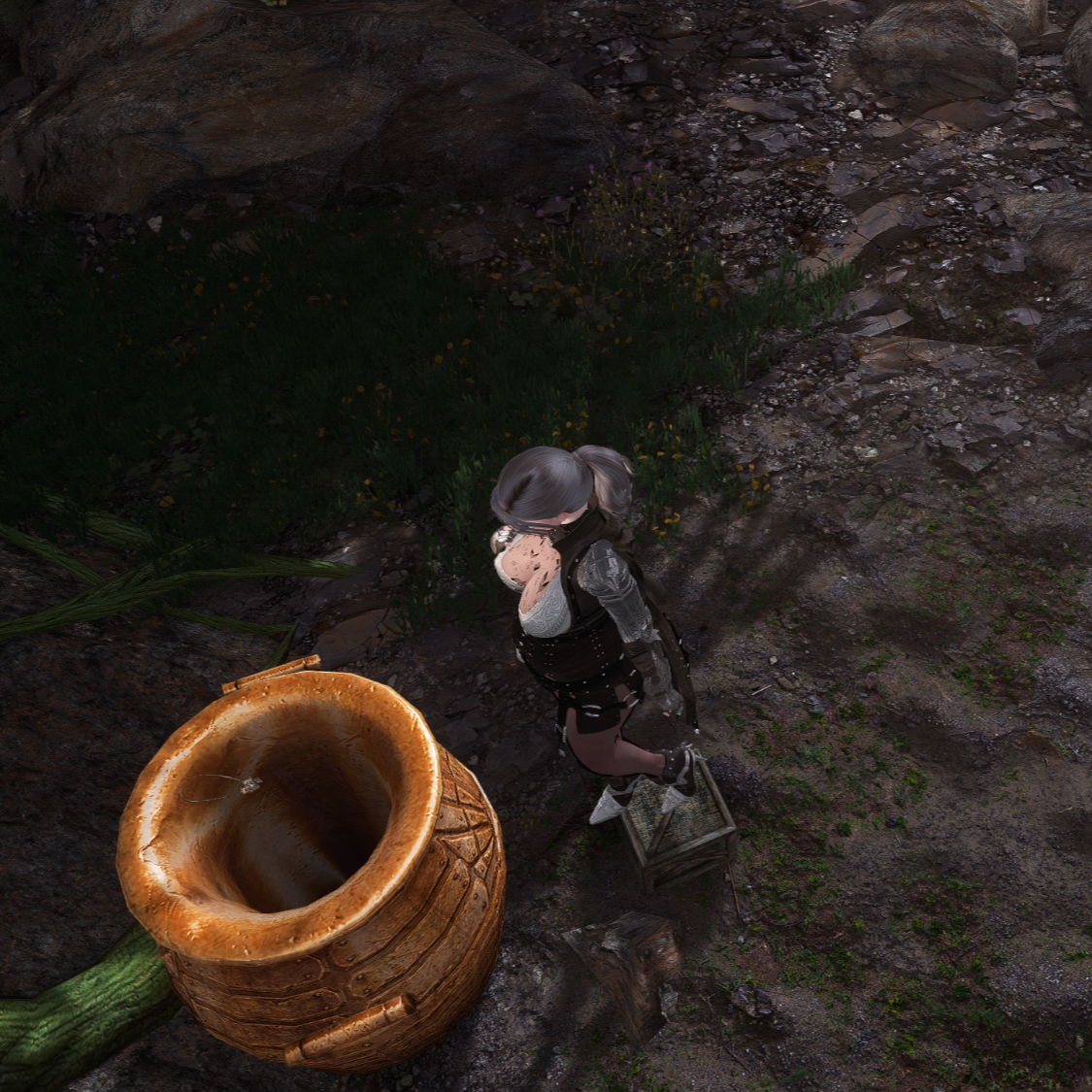 깨끗한 케쉬 NPC가 있는 바로 반대편에 언덕 길로 올라간 후, 길이 있는 내리막길을 내려가면 드웨머 유적지가 발견됩니다.그 곳을 지나 조금 더 가면 드웨머 유적지 이름이 브타담즈 입니다.
