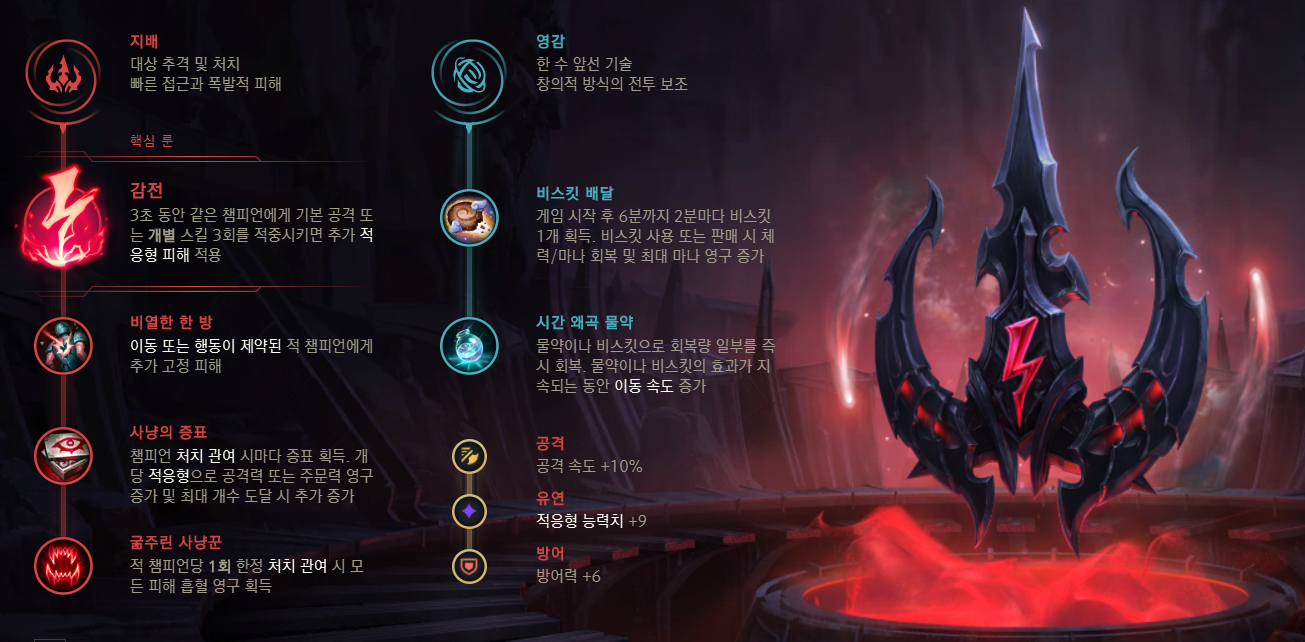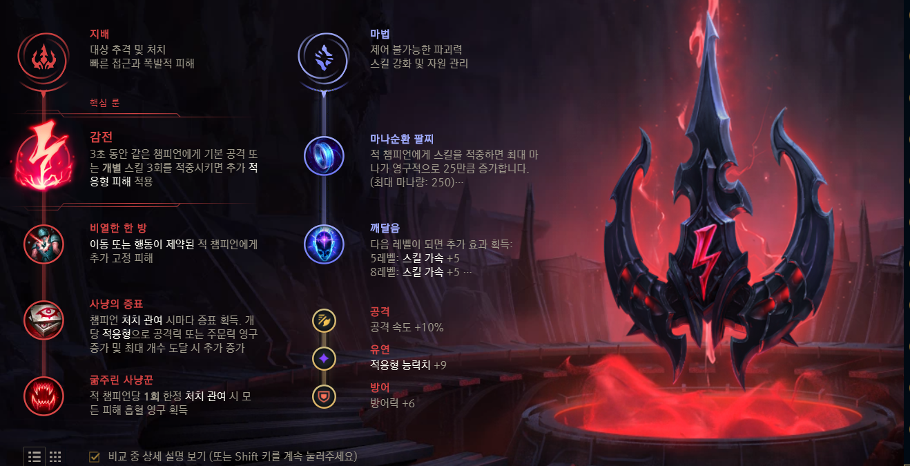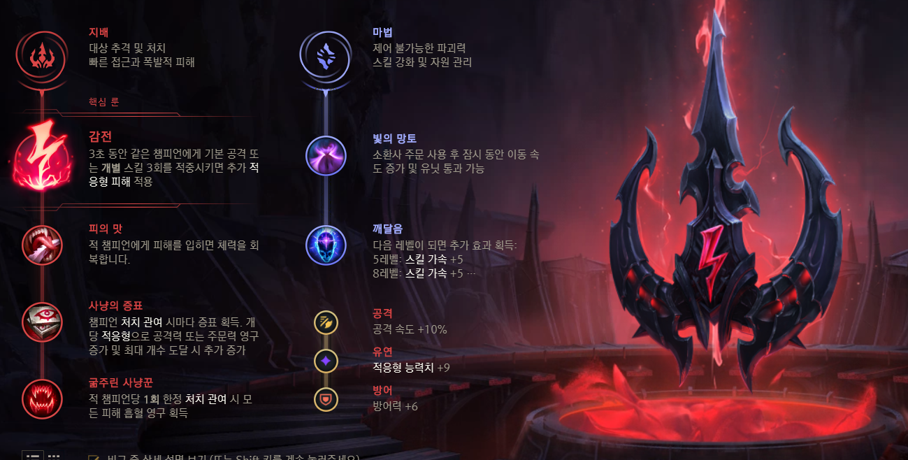 조이 핵심 룬 감전, 굶주인 사냥꾼 룬이 필수적임.