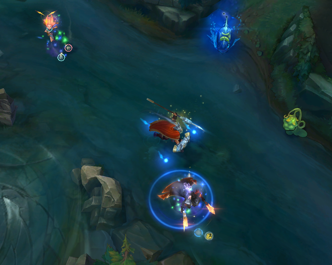 다른 여러가지 챔피언들, 진 궁극기, 제라스 궁극기, 쉔 궁극기(솔로랭크의 경우 텝키 계속 누르고 스펠이나 상태 전반적인 것들 다 확인하고 체력바 계속 보면서 맵리딩 매우 잘 해야함. 마스터~그랜드마스터 티어 기준), 블리츠 그랩 로켓팔, 노틸러스 닻이 대표적인데, 어쩄거나 조이의 핵심은 통통별 헤롱헤롱쿨쿨방울 맞춰야 하는 법.