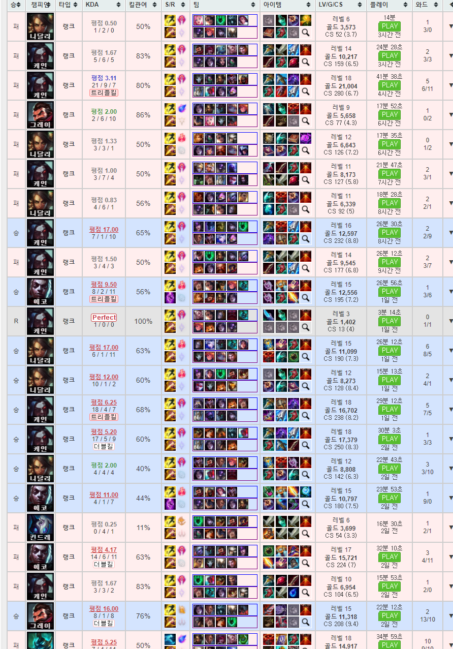아군 미드 탑이 불리한 상황에서도 케인, 그레이브즈, 니달리, 헤카림으로 엄청난 영향력을 보여주면서 게임하네요.