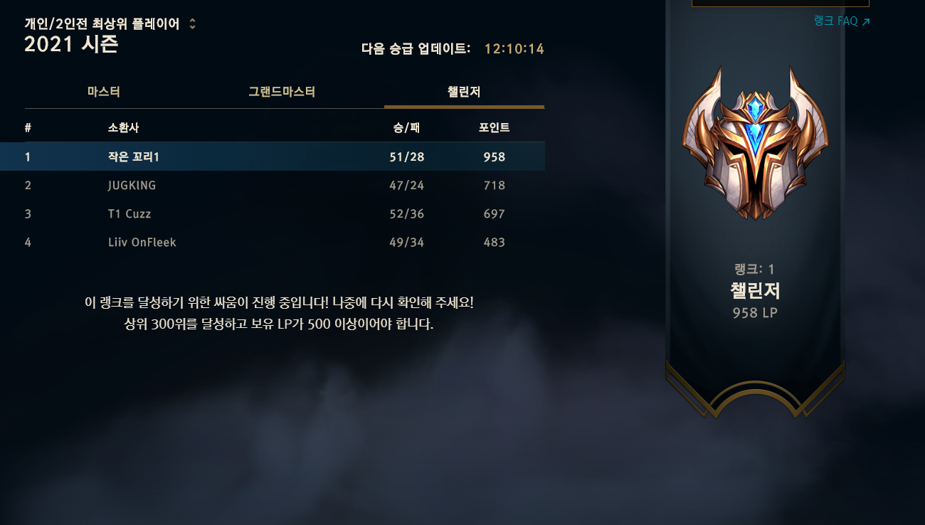 리그오브레전드 시즌11 05년생 최초 챌린저 (한국서버 TOP50 랭킹 정리)