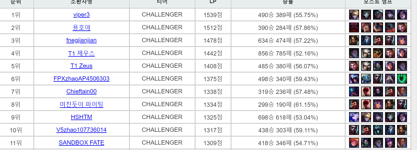| 리그오브레전드 시즌11 05년생 최초 챌린저 (한국서버 TOP50 랭킹 정리) (0) | 2021.01.15 |