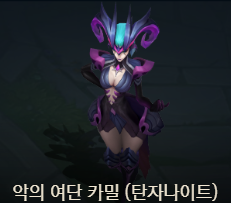 이번에 악의 여단 챔피언들로 구성된 조합을 맞출 수 있다는 장점, 그리고 챌린저 카밀이 된 것 같은 느낌으로 사용할 수 있다는 장점이 있습니다.