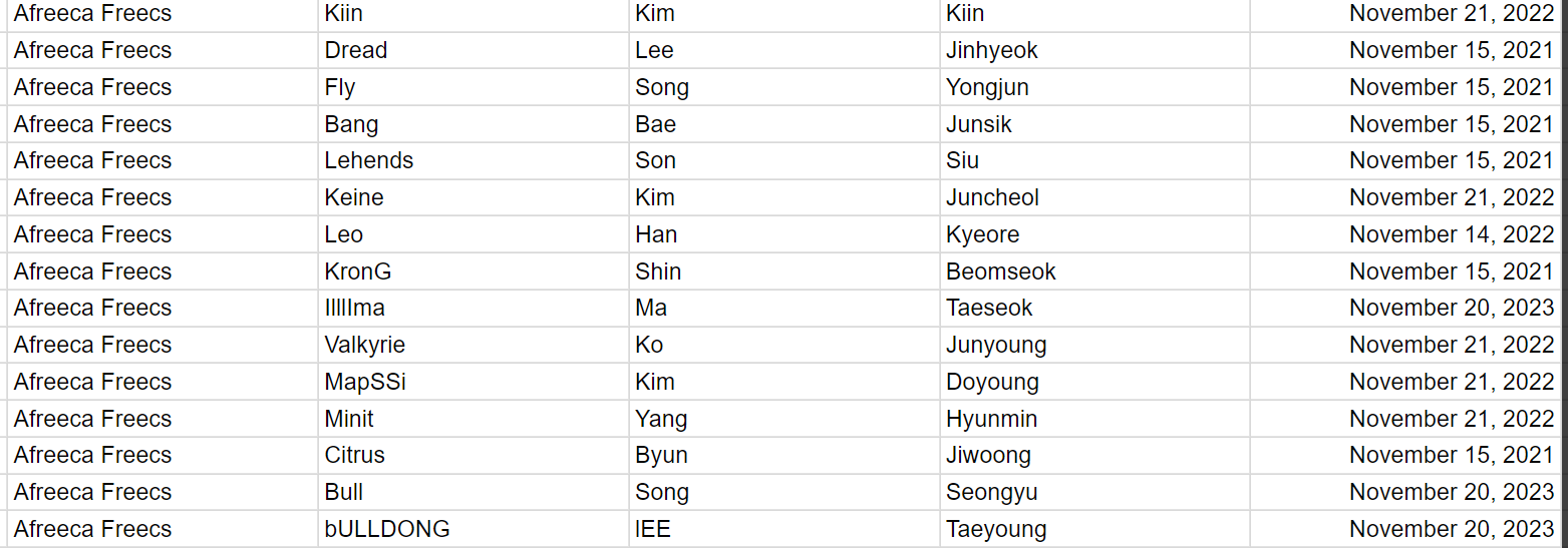 현 시즌에서도 좋은 성적을 보여주고 있고, 영입 할 수 있는 가능성이 희박한 선수도 있지만 아프리카 프릭스에서 파격적인 리빌딩을 보여주게 된다면 재계약이 체결되지 않아 FA 신분이 된 선수들 중 아프리카프릭스 구단에서 기인과 함께 시너지를 더해 꼭 협상을 했으면 좋겠습니다.