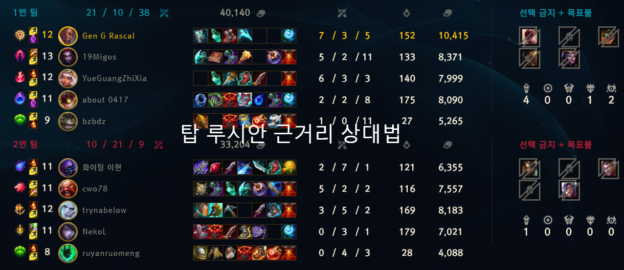 상대방이 절대 안 싸워 주면, 최대한 디나이만 하면서 후반 ADC의 캐리력을 기반으로 성장하고 싸워주지 않아야 합니다.