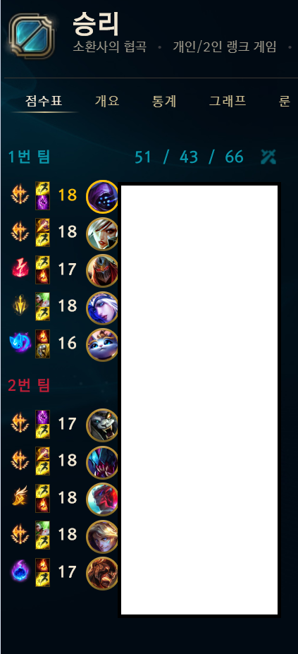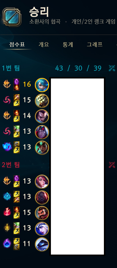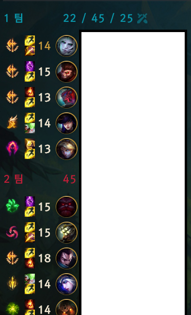 상대팀은 기사듀오도 없었고 부캐도 없는 서로 현지인 대결이었음에도 불구하고 패배했습니다. 초반 스노우볼에 실패했을 때 게임 전체적으로 장악하면서 게임하진 못하더라도 던지는 거 주워담아서 싸우거나 할만한 게임인데 졌기에 많이 아쉽네요.