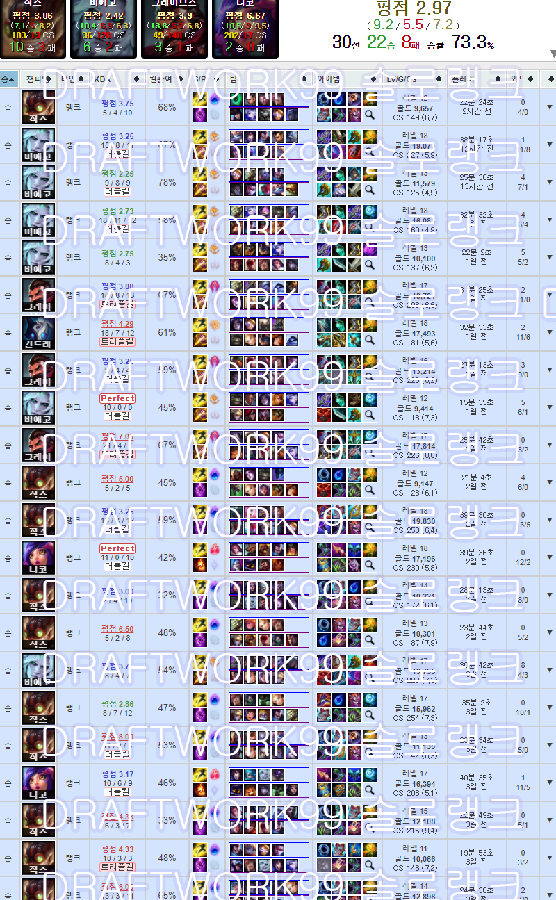 제 모스트는 시즌2부터 조금 확장된 챔피언풀인 카직스 이블린 녹턴 카사딘 엘리스 블라디미르 제이스 라이즈 탈론 제드 트리스타나 이즈리얼 코르키 소라카였는데(시즌3시절 다이아1 99포인트 무한 0포인트 반복이지만 제 평생의 업적입니다.) 천리안맥스 씨맥이 쓰던 챔피언들 중 좋다고 생각하던 챔피언은 별로 없었습니다.