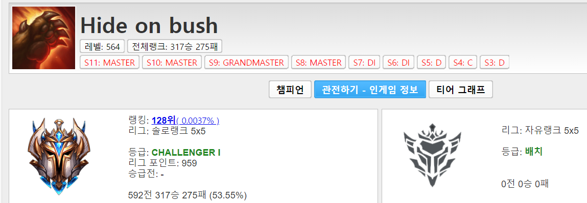 솔로랭크를 엄청 열심히 돌려서 최상위티어에 올라갈만한 신규 롤 유입 유저가 거의 없다.