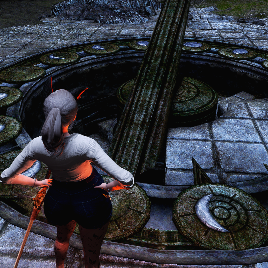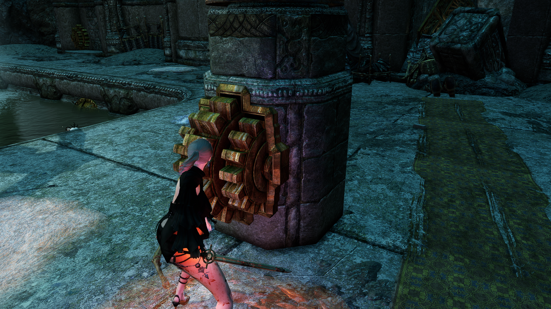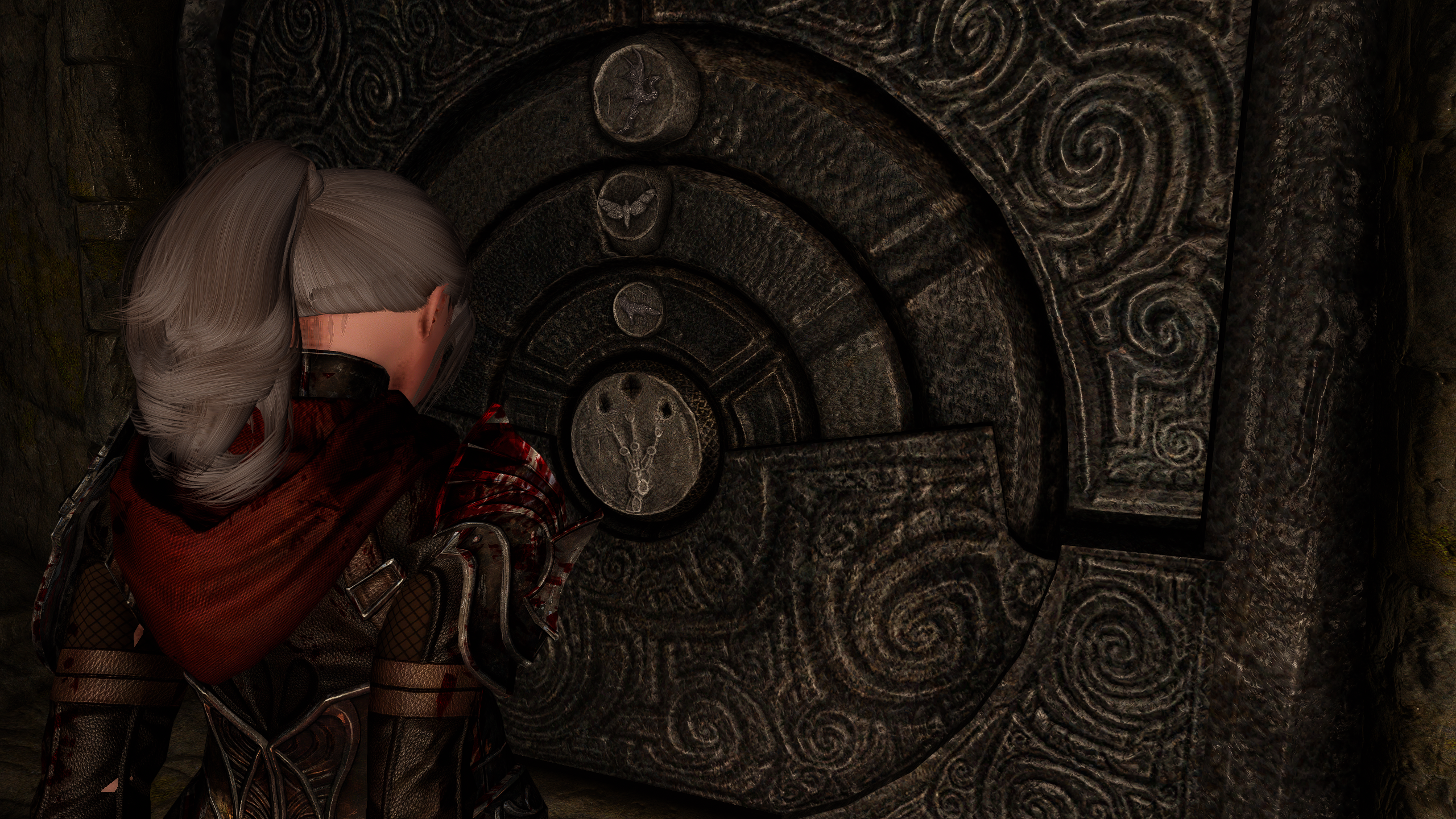 바깥고리, 중간고리, 안쪽고리에 늑대, 잠자리, 드래곤을 순서대로 작동시킨 후 에보니 발톱을 열쇠 구멍에 사용하면 문이 열립니다.