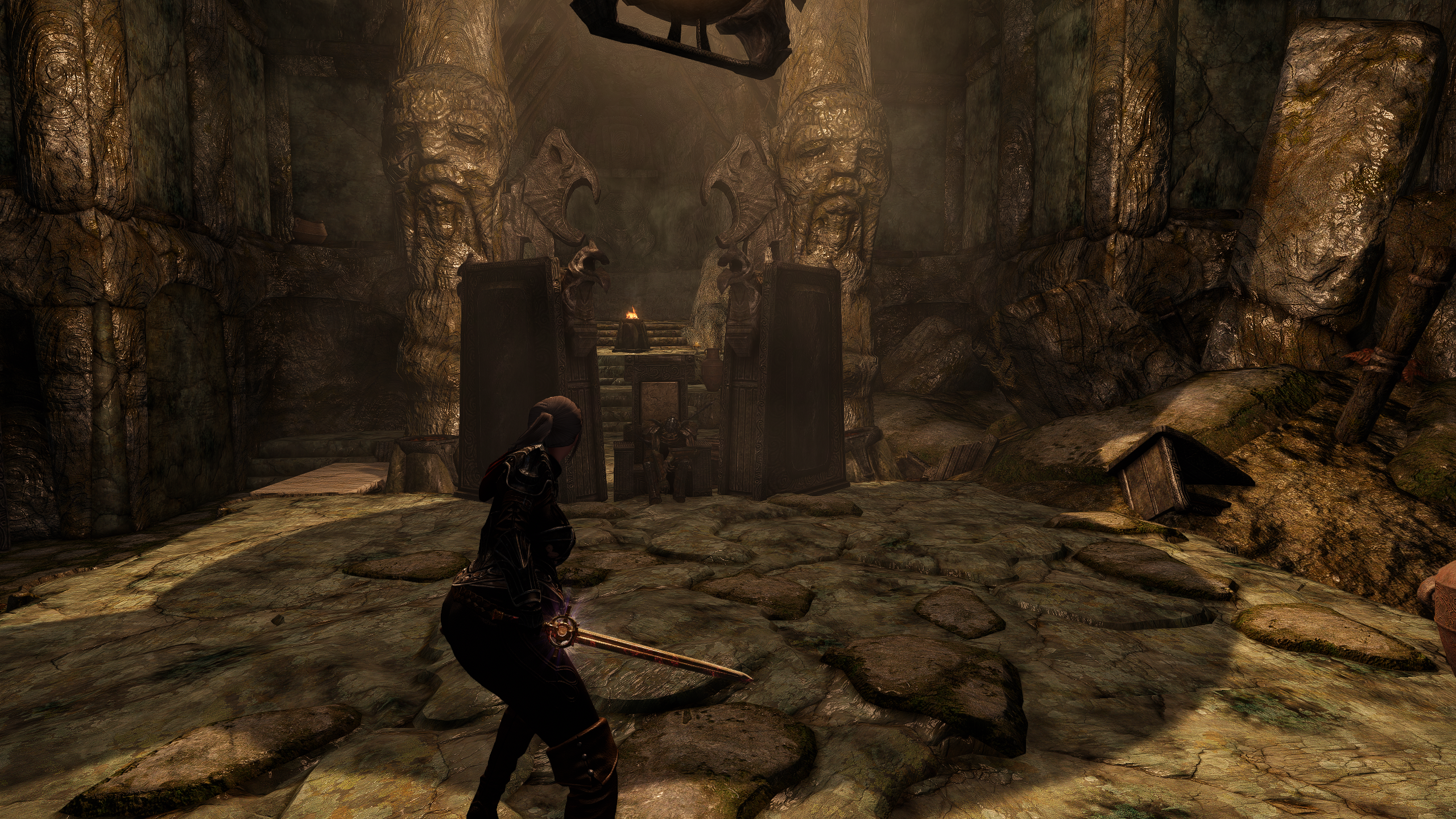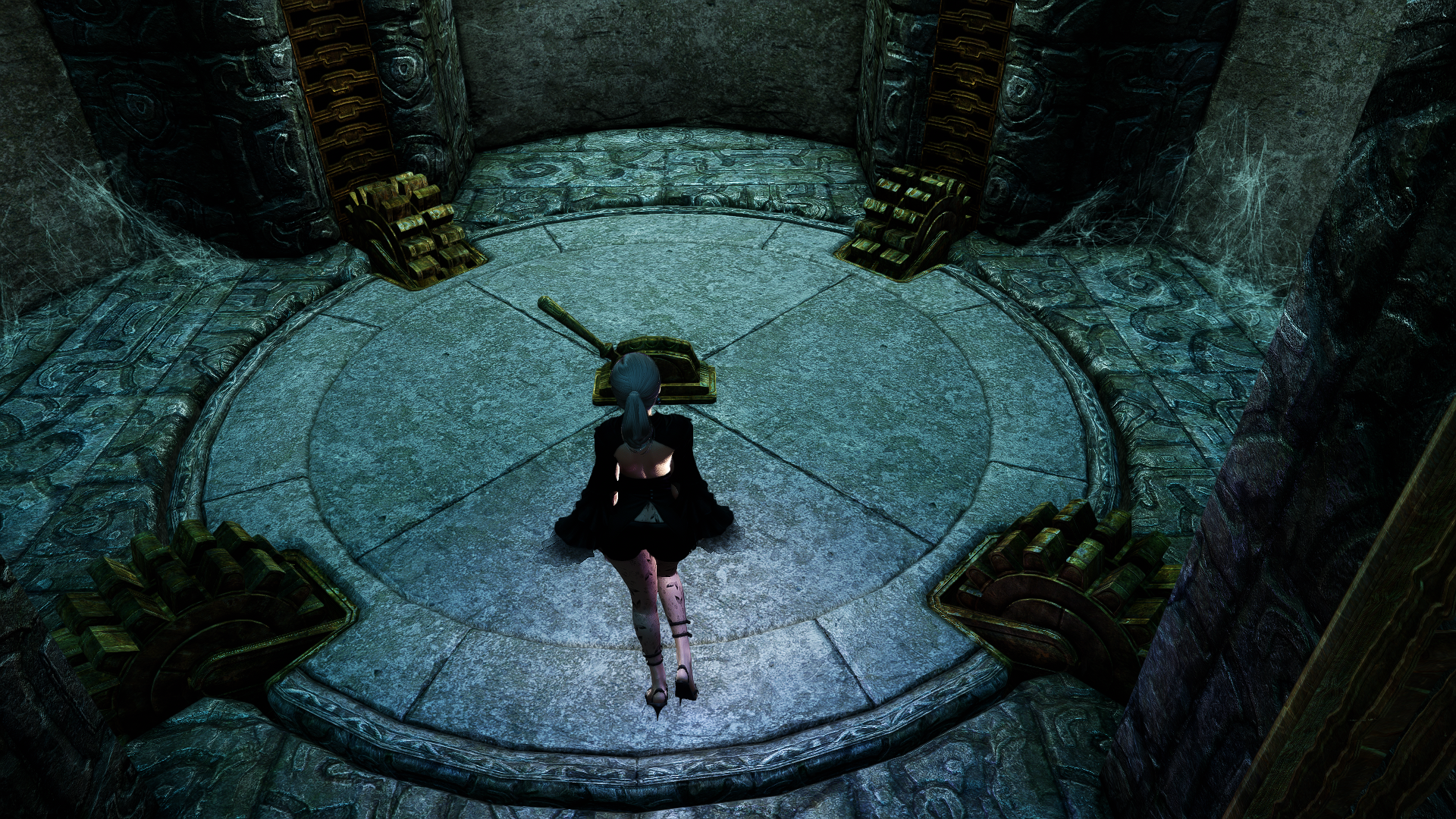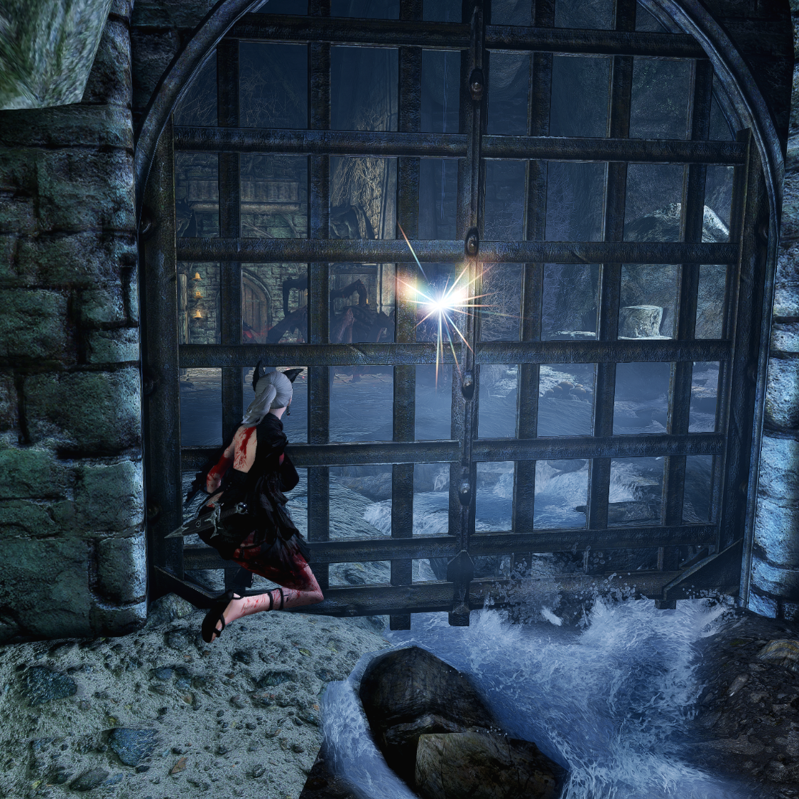 바깥고리, 중간고리, 안쪽고리에 늑대, 잠자리, 드래곤을 순서대로 작동시킨 후 에보니 발톱을 열쇠 구멍에 사용하면 문이 열립니다.