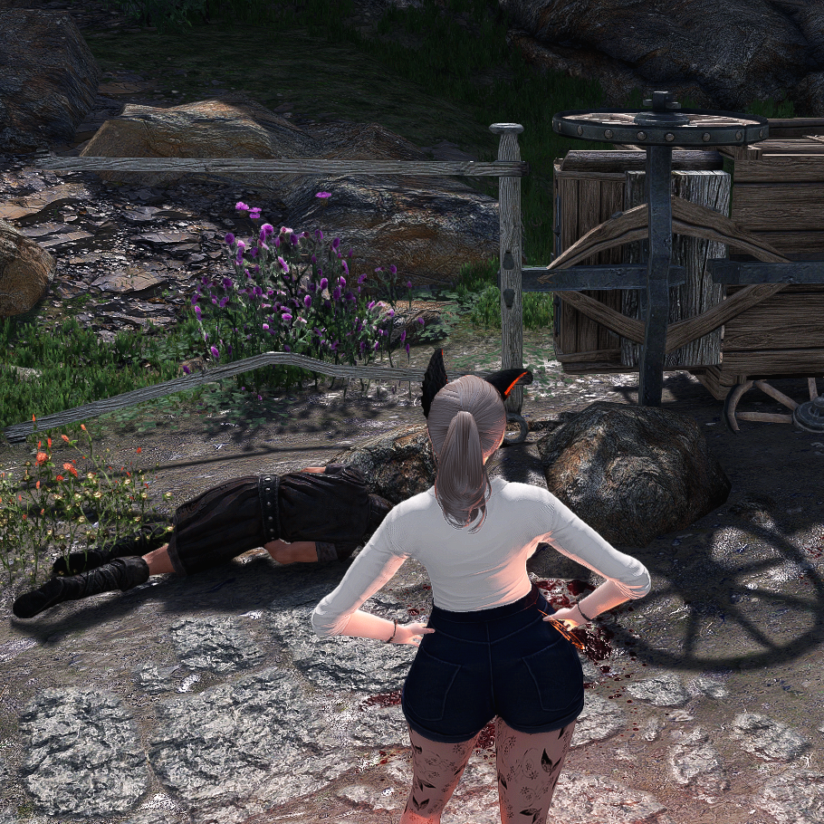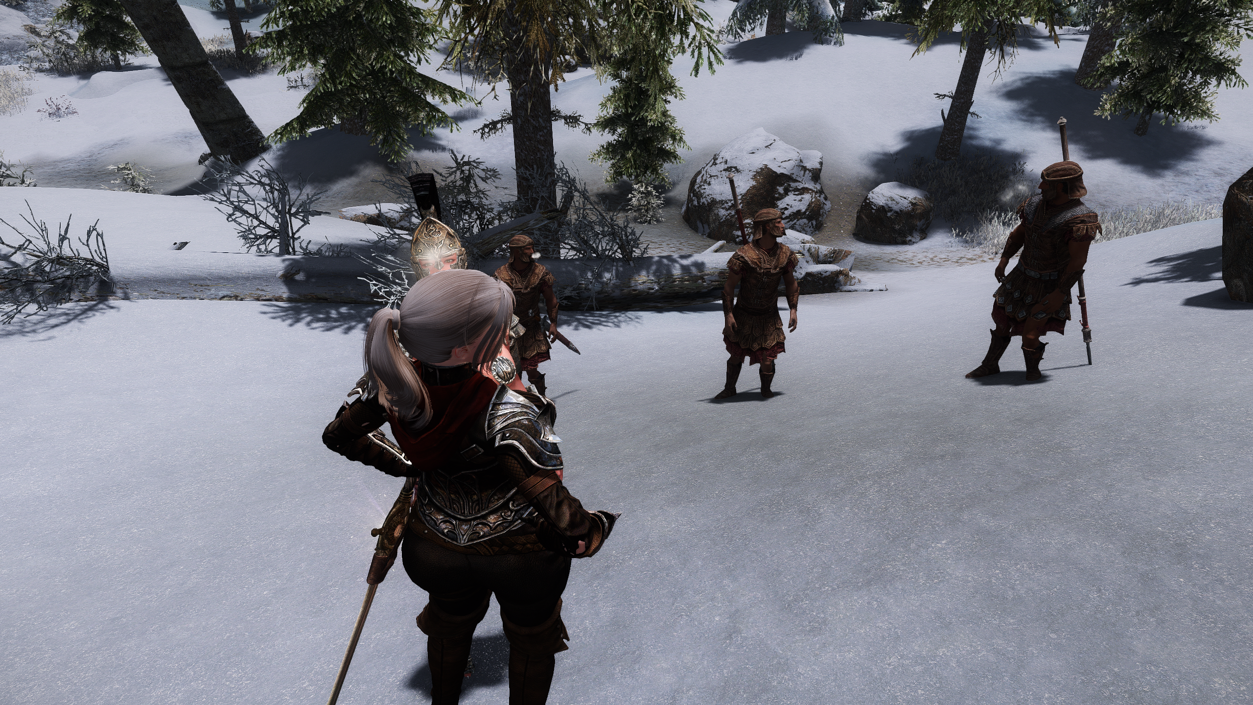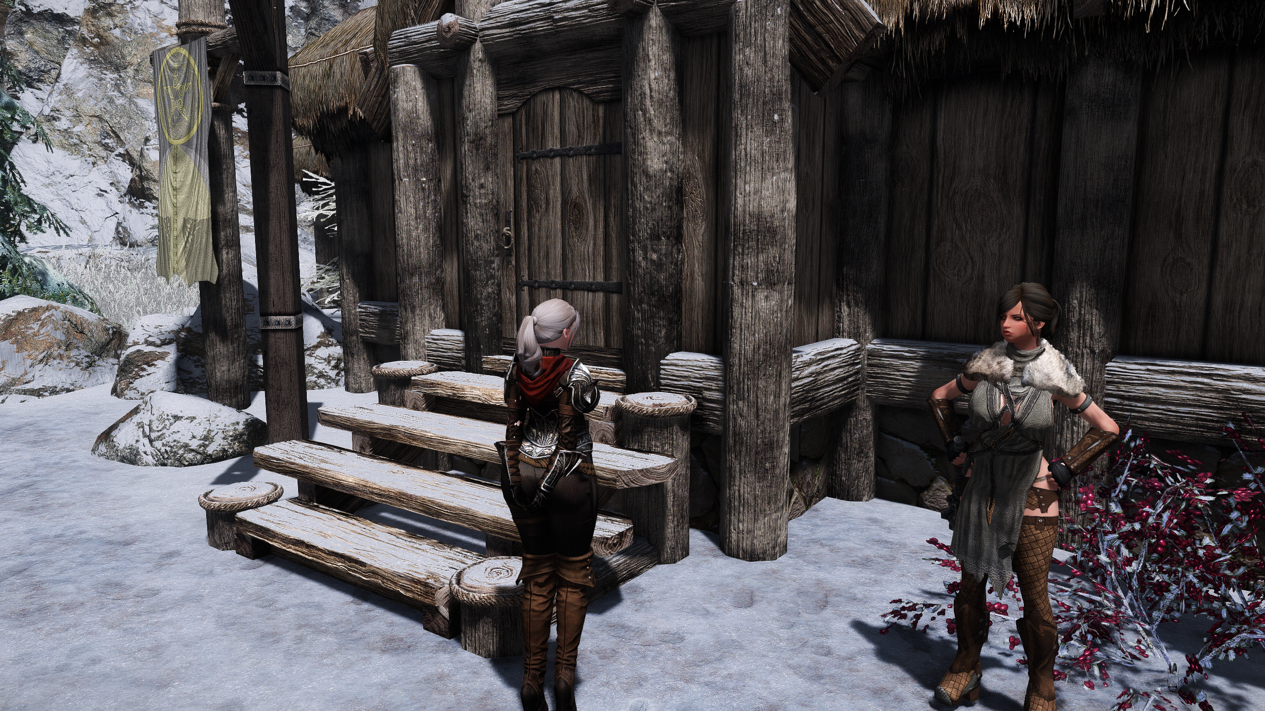 솔리튜드 북서쪽에 위치한 흐라그스태드 요새 입구에는 쌍수 단검, 활 공격을 사용하는 산적 폭력배, 산적 무법자가 있습니다. (마법사는 없음)