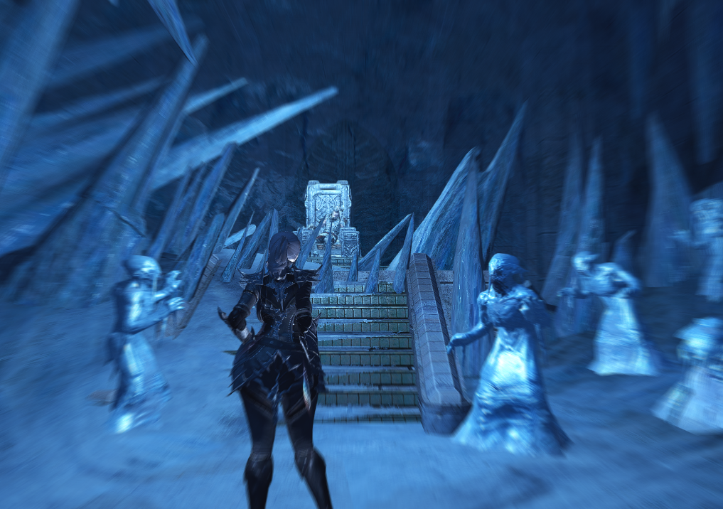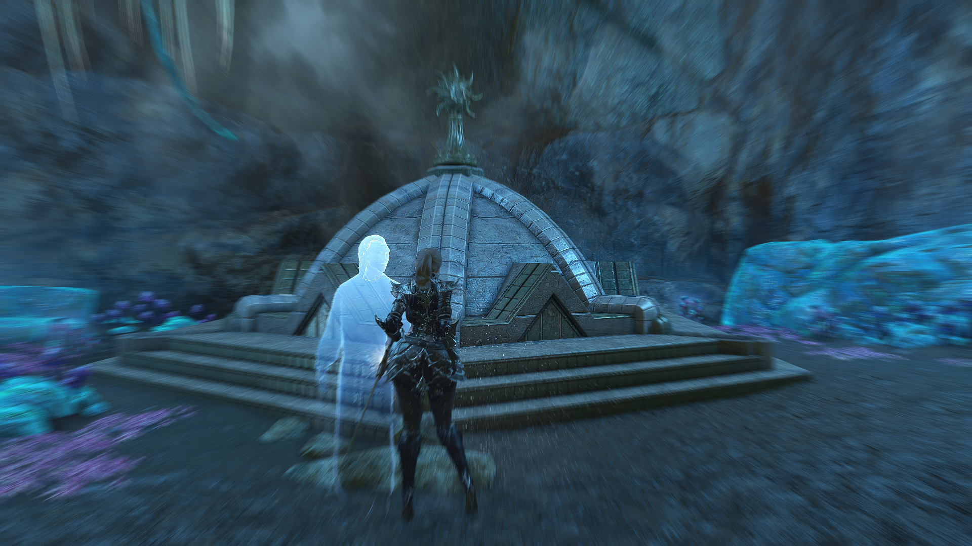 하류에서 계속 이동하면서 다크폴 동굴 내에 있는 아우리엘의 예배당까지 퀘스트 진행함. 스노우 엘프 기사인 겔레보어를 만남.