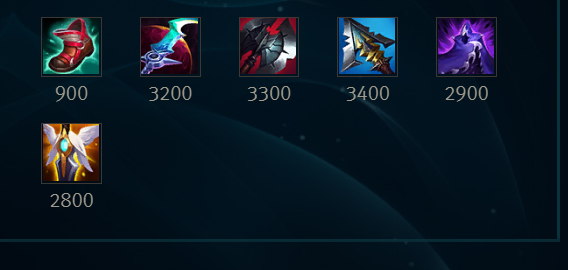 도란의 반지 -> 흡수의 시선 -> 균열 생성기 -> 신속의 장화 -> 곡궁 -> 내셔의 이빨 -> 광휘의 검 -> 에테르 환영 -> 리치베인 -> 방출의 마법봉 -> 거인의 허리띠 -> 라일라이의 수정홀 -> 쓸데없이 큰 지팡이 -> 라바돈의 죽음모자