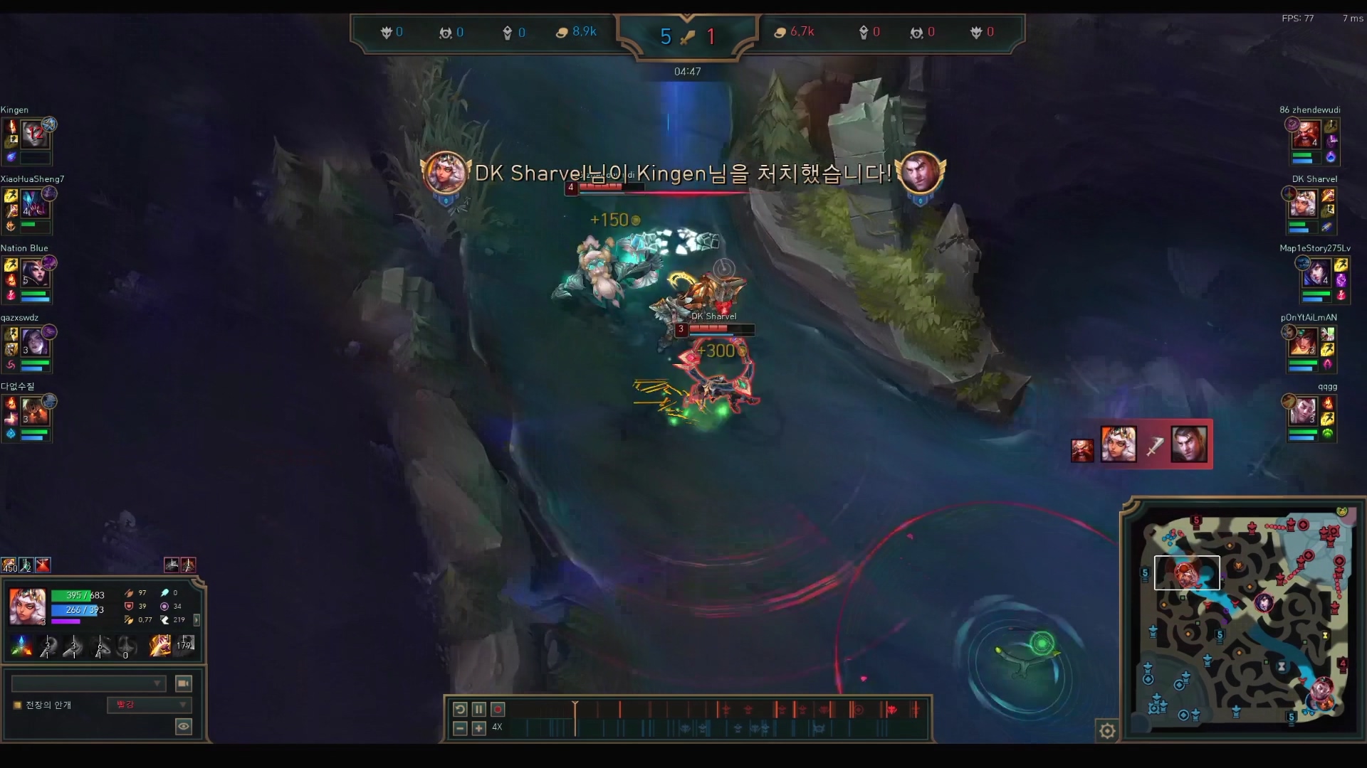 영재 리신 판에서 바론 뺏길 줄 알았는데 강타 제대로 사용했고 용의 분노 이후 강타 사용해서 용 스틸하는 것도 당장 리신이 뭔가 안 해도 되는 상황에서 천천히 음파 맞추고 잘했다.