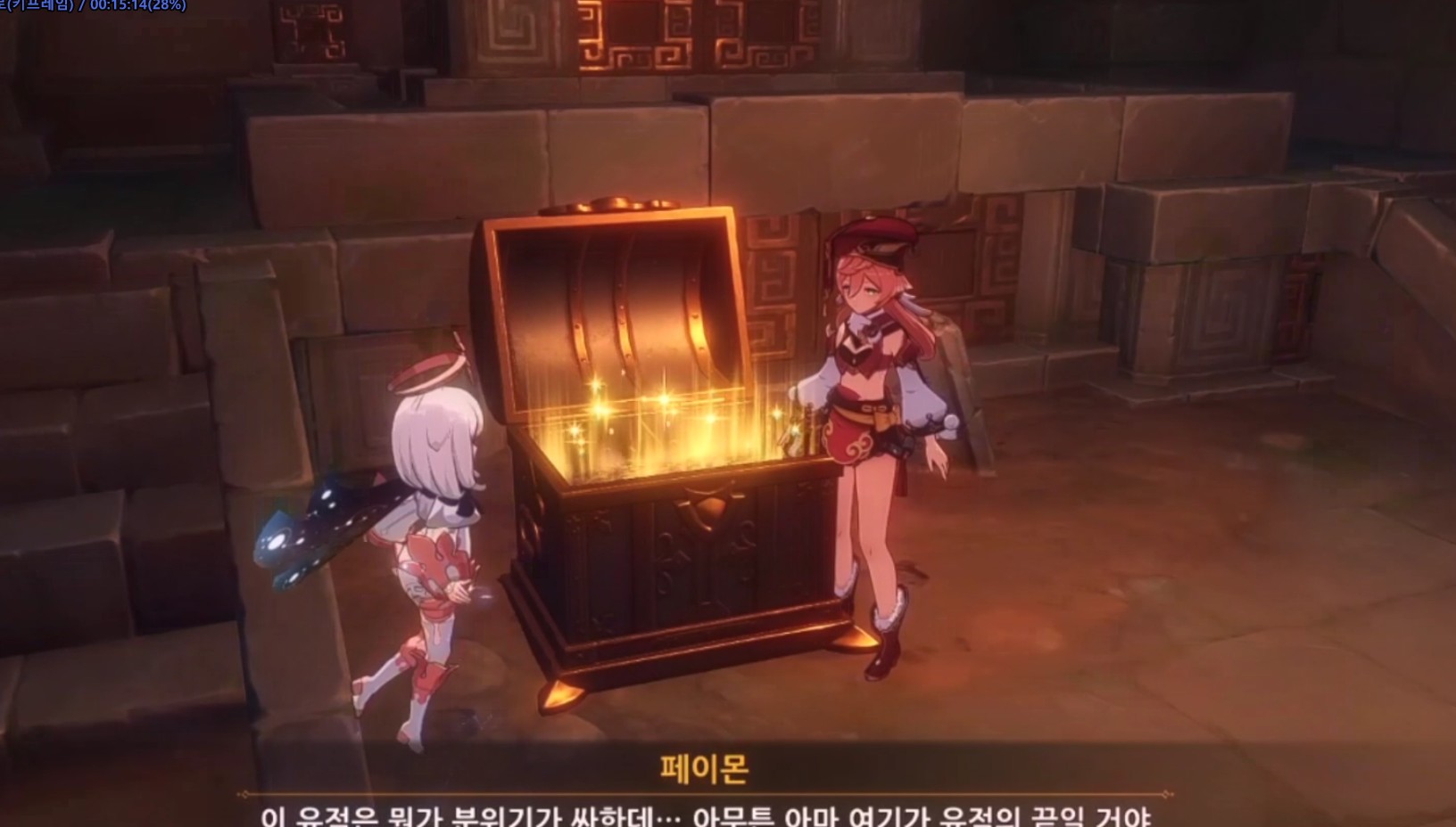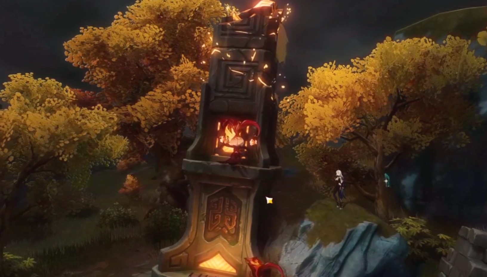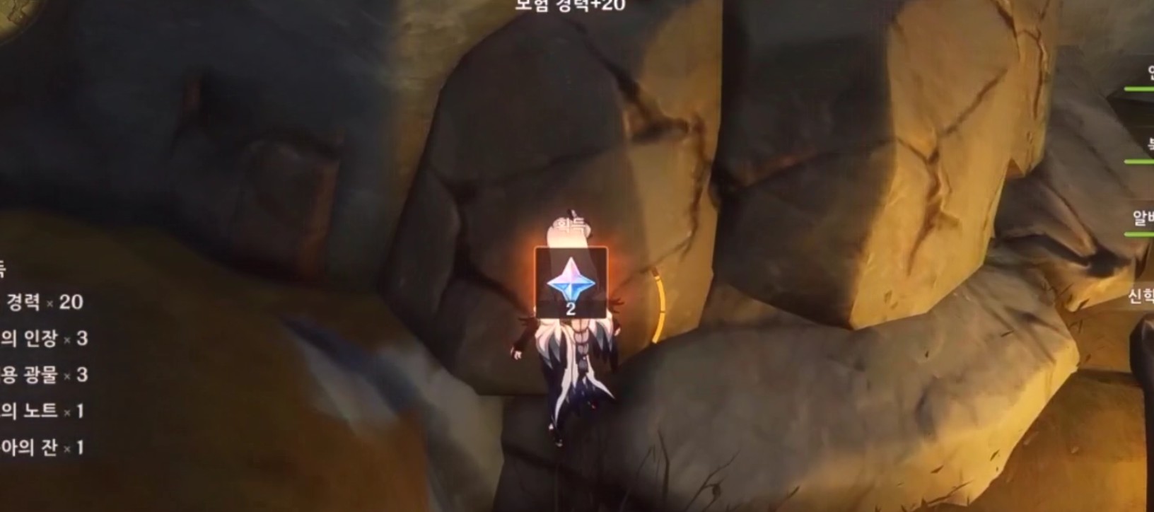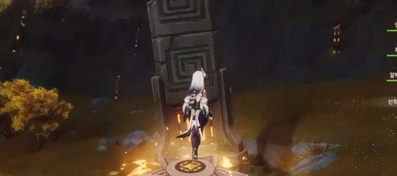 유적헌터 Fo-62012를 처치하면 원석 5개와 바위의 인장 4개가 들어있는 진귀한 보물상자, 화려한 보물상자를 열 수 있는데 계단을 올라가면 아홉 정세의 기둥에 대한 해석이 있습니다.