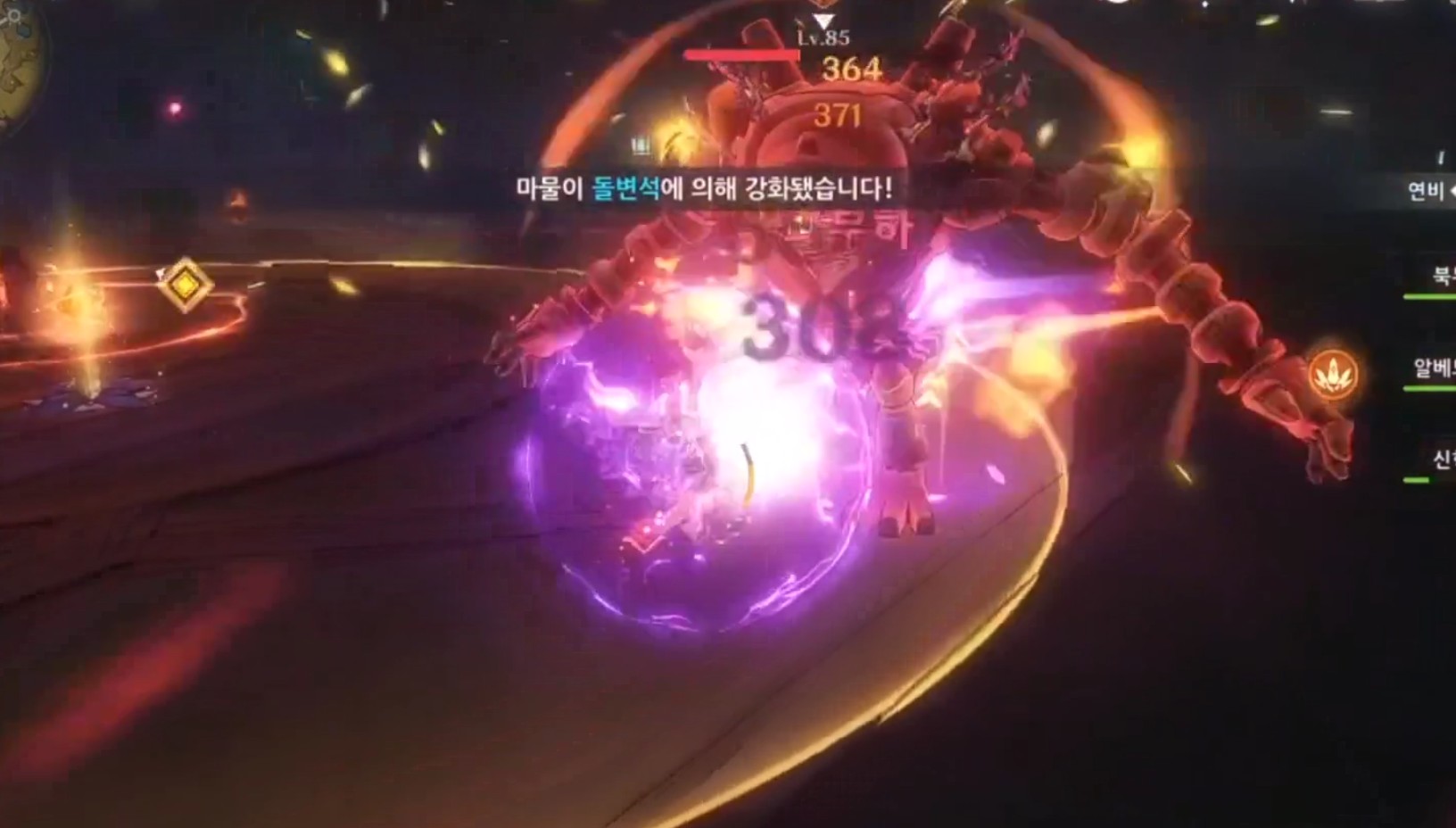 첫 공격 풀 원소 > 정글 초기화 안 되게 2대 때리고 뒤로 이동하면서 바위 원소 줍고 450 강타