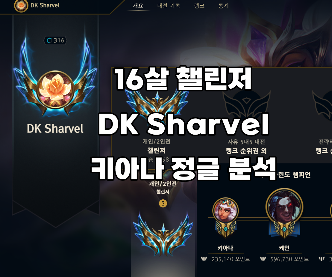 만 14세 나이에 챌린저를 달성한 솔랭 6층 주민 담원기아 샤벨, 탈론 정글, 다이애나 정글, 비에고 정글, 선제공격 그림자 암살자 케인, 선제공격 키아나 정글, 감전 미드 키아나 정도의 챔피언 폭을 갖고 있는 담원의 아카데미 유저입니다.