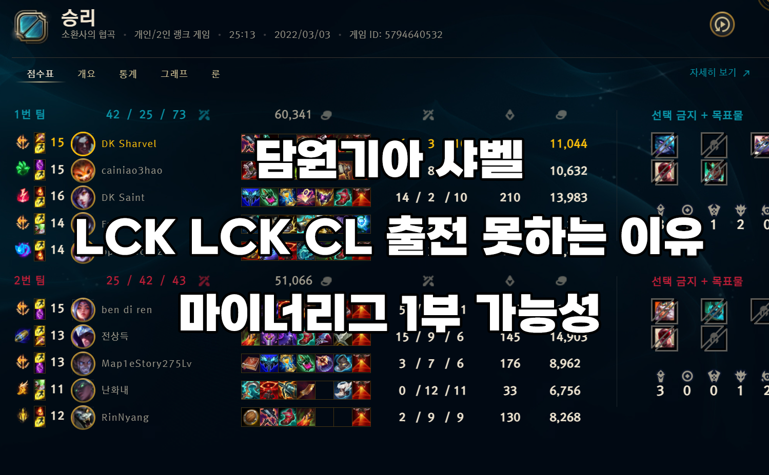 일설에서는 아카데미 시리즈와 챌린저스 코리아 간의 큰 벽이 있다고 얘기하기도 하는데, 아직은 유망주니까 앞으로 솔랭이 아닌 팀 게임 경험치를 먹게 됐을 때는 어떨지 궁금하네요.