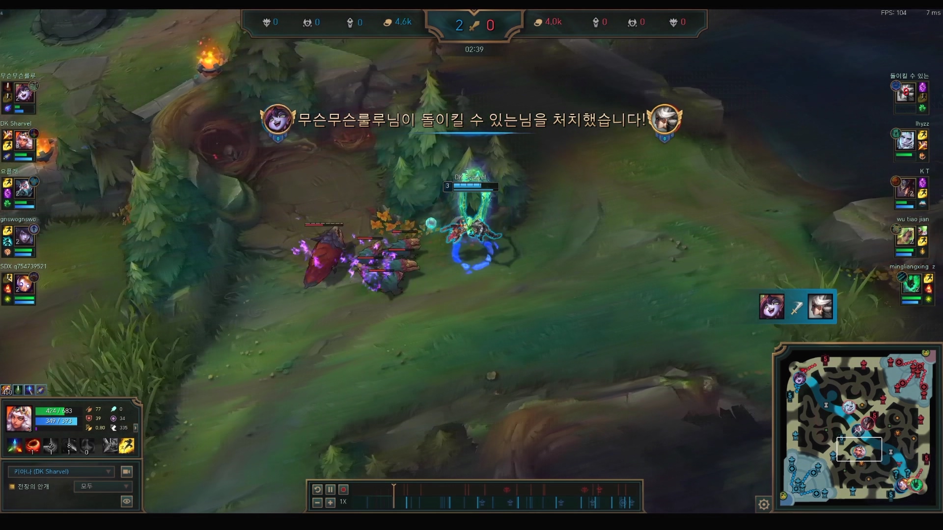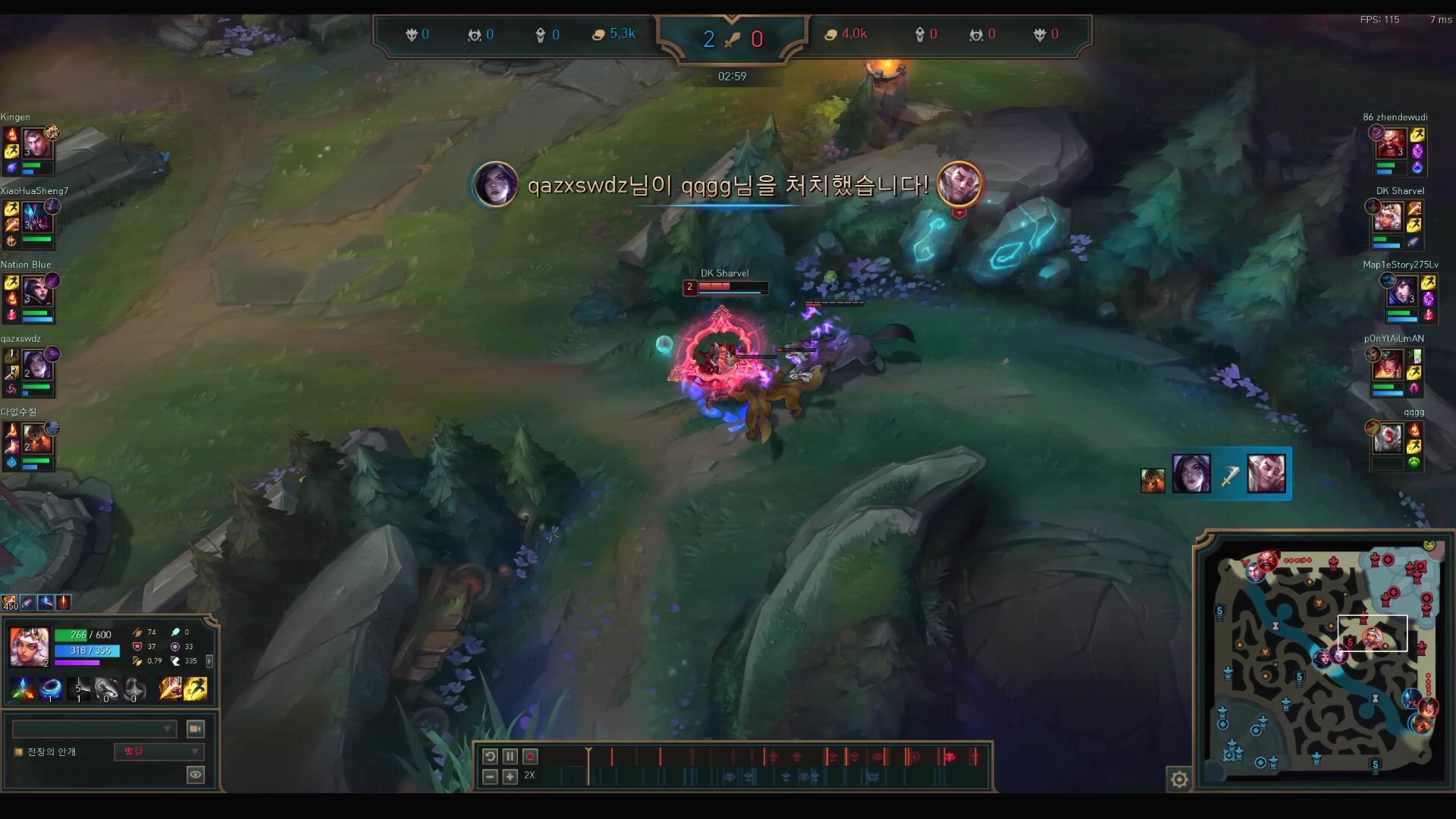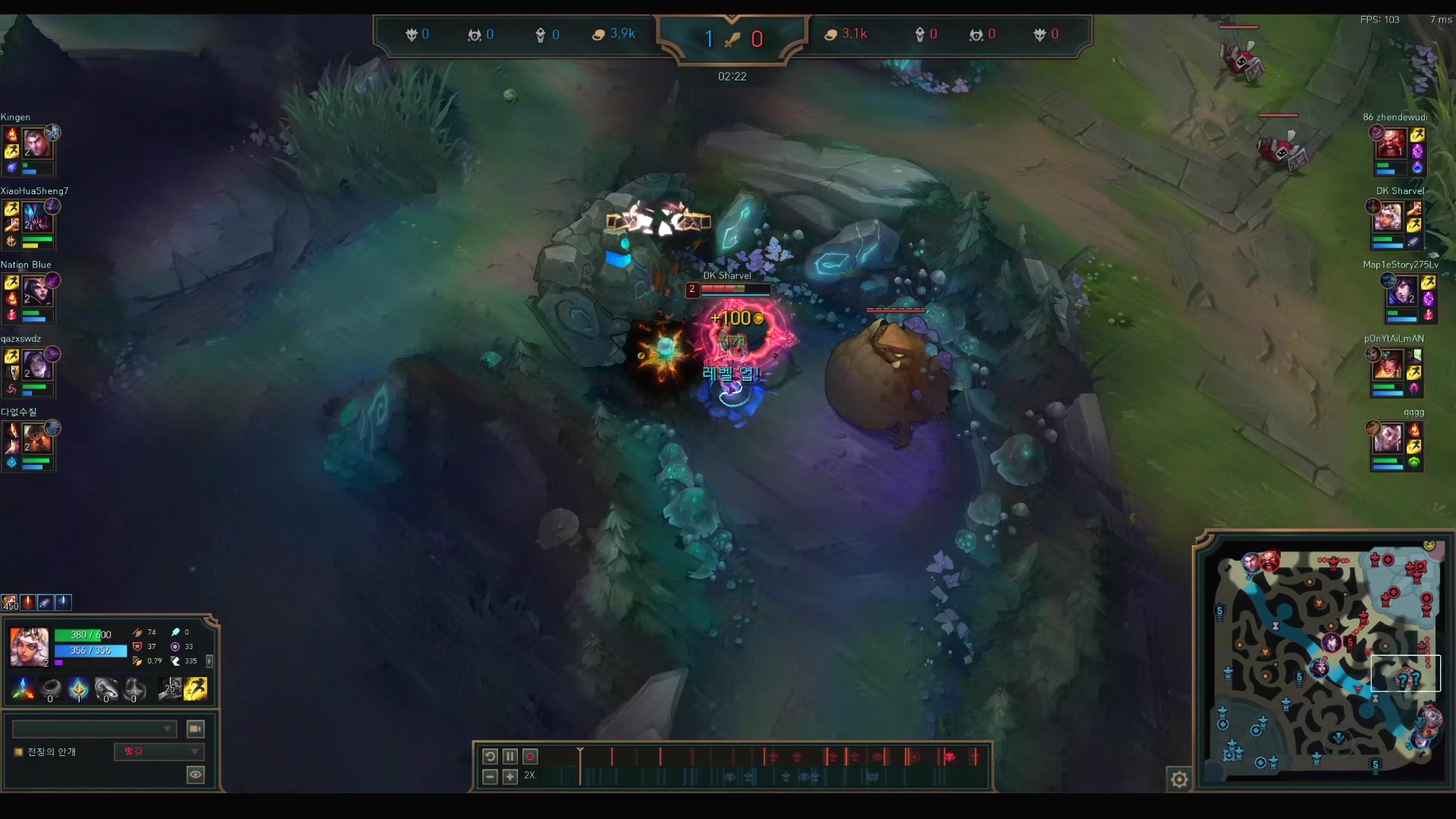 스크림 참여가 얼마나 적었으면 이런 수준인지, 리신 방생했을 때 보이스 오더 어떻게 했을지 궁금하다. 그라가스는 한타에서 어떤 포지션으로 전투하려고 했던 건지 잘 모르겠다. 아마도 팀을 부를 때 이름이나 스킬 오더가 이상했던 것으로 보임. 상대가 기인 나르였던 부분들도 있지만 점멸 있는 상황에서 멘탈 이슈로 스킬 명중률이 떨어진 것 같다.
