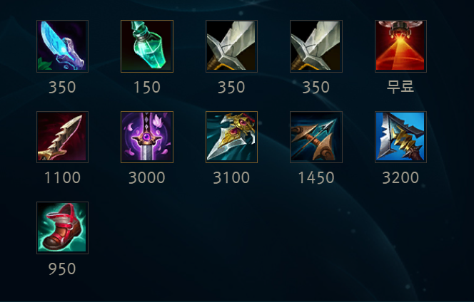 조합이나 전체적인 유불리 상황에 따라 첫 코어 아이템 요우무 또는 자객의 발톱을 구입하고, 세릴다까지 고정 아이템으로 구입합니다.