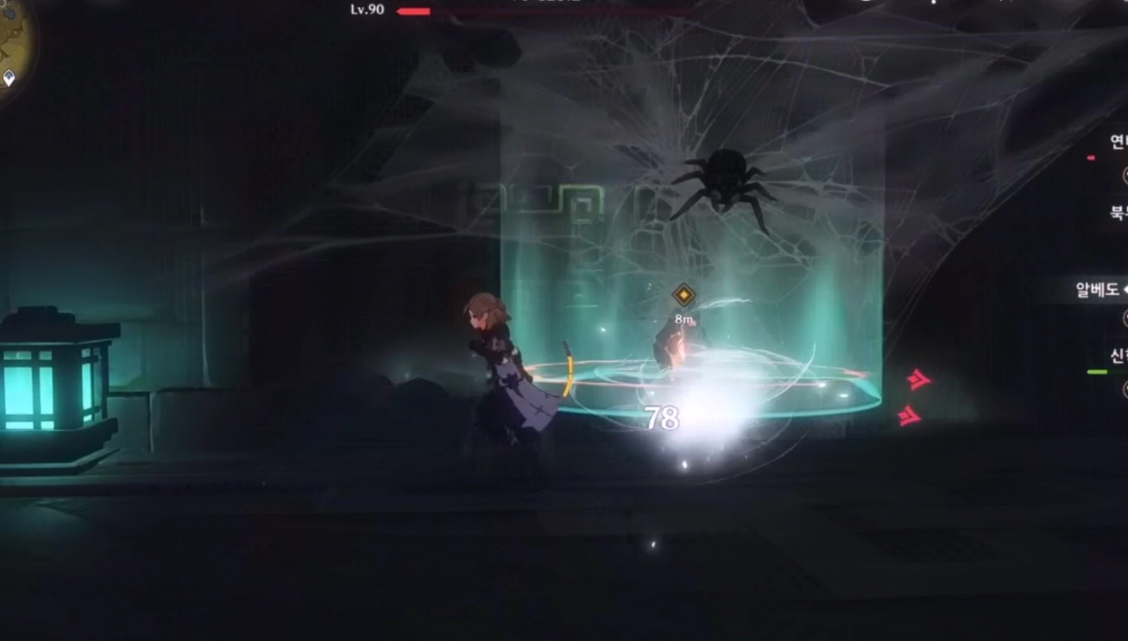 양손 검이나 불 원소를 이용해 거미줄을 제거하면 공중에서만 진입할 수 있는 장막이 있습니다.