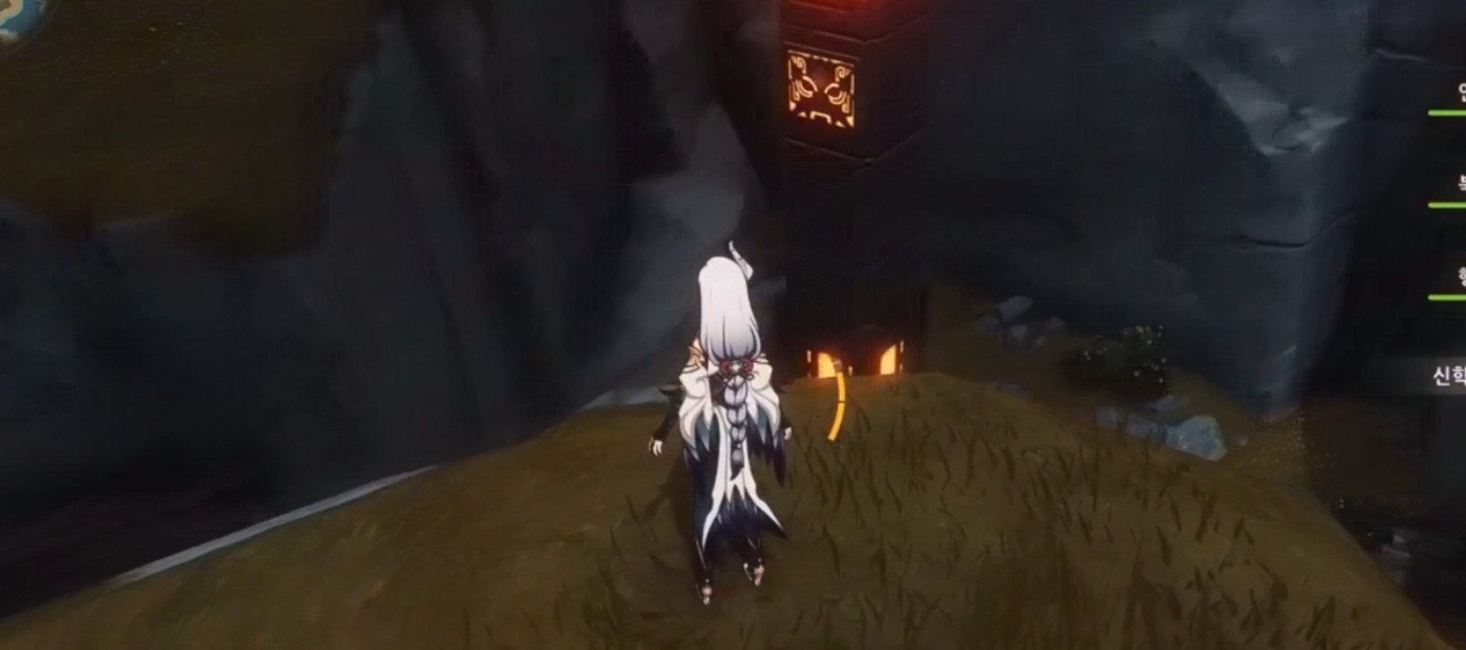 돌변석을 바위 도마뱀이 지키고 있는데, 무시하고 벽 가장자리에서 등반해서 최대한 올라간 후 결계 안으로 들어가면 됩니다.