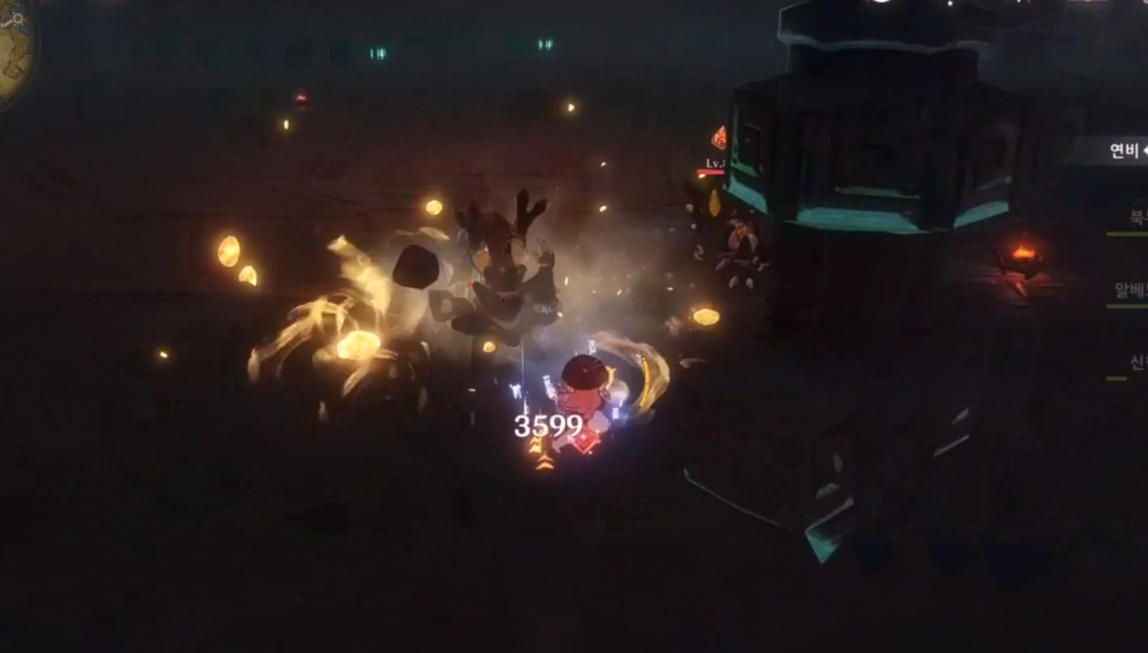 원소의 분노 사용하지 않고 큰 돌거북한테 강타 쓰고 정리 후 돌거북 3기 반피 이상 깎아서 바위 원소 치명타 Q 터트려서 처치하고 새끼 돌거북 6기 칼날부리로 이동하면서 한 번에 정리