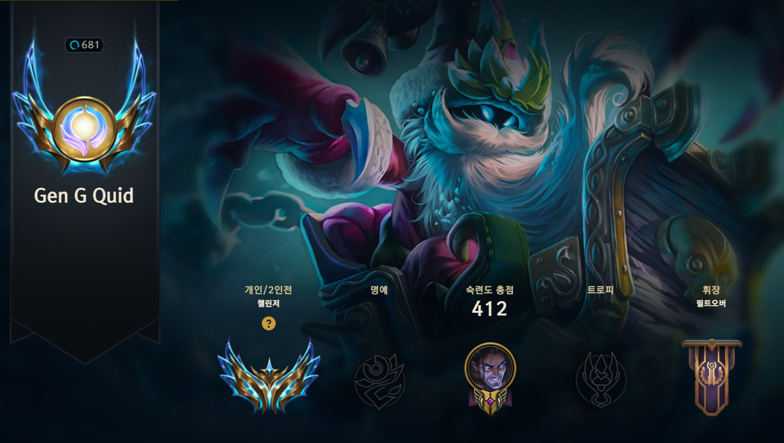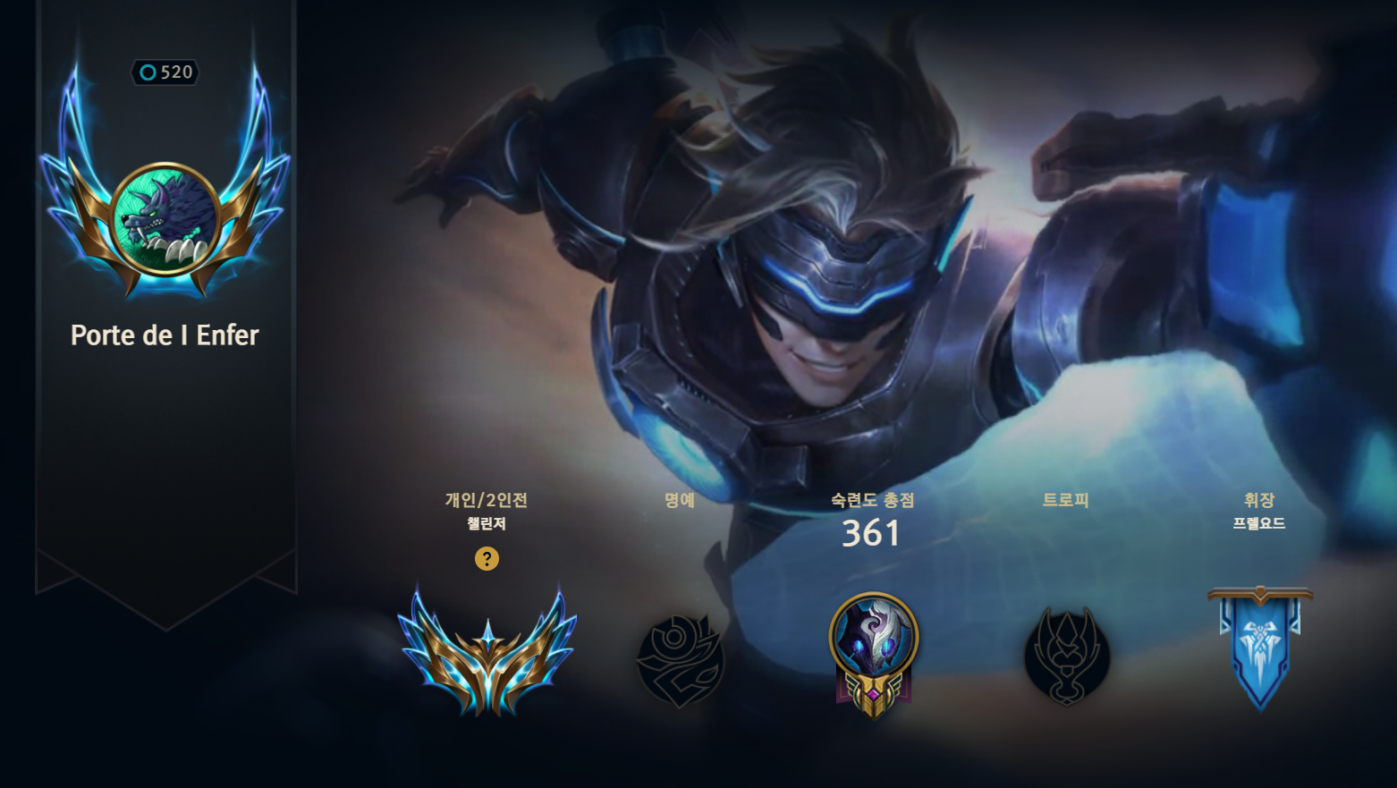 전 챌린저, 전프로게이머 1군 원딜 부계정 스웨덴의 바이킹, 어상내하 슈퍼계정 둘 다 승패차이 30, 티어는 다1, 챌린저 최상위권 챌3위
