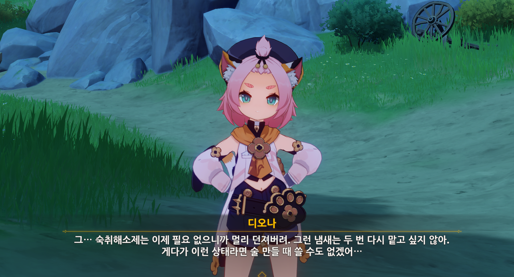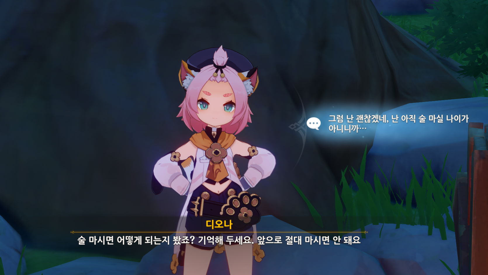 다신 술집에 오고 싶지 않게 디오나가 특제 음료를 한 잔 만들어줄 예정이라고 하네요.