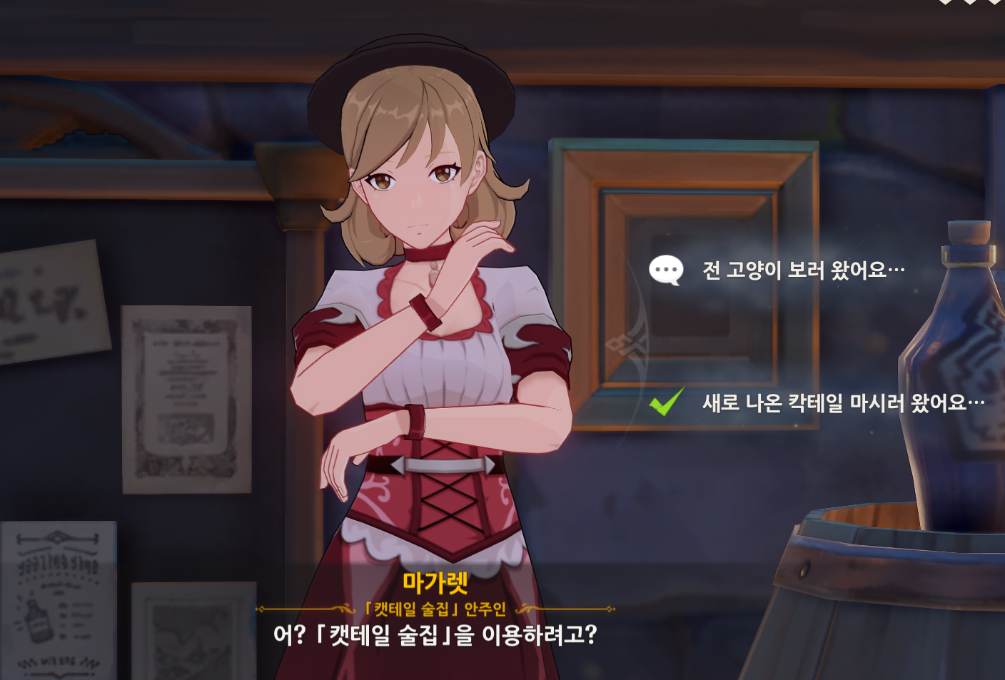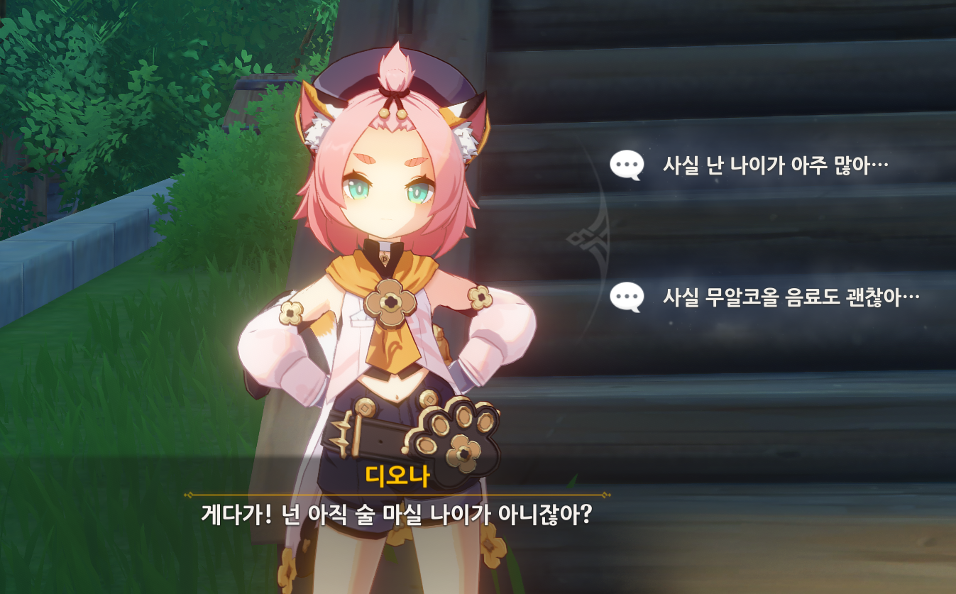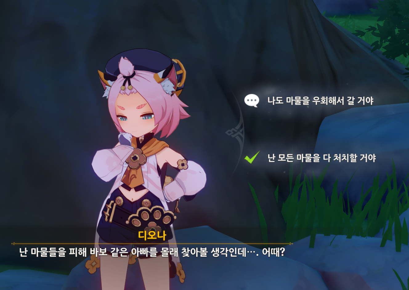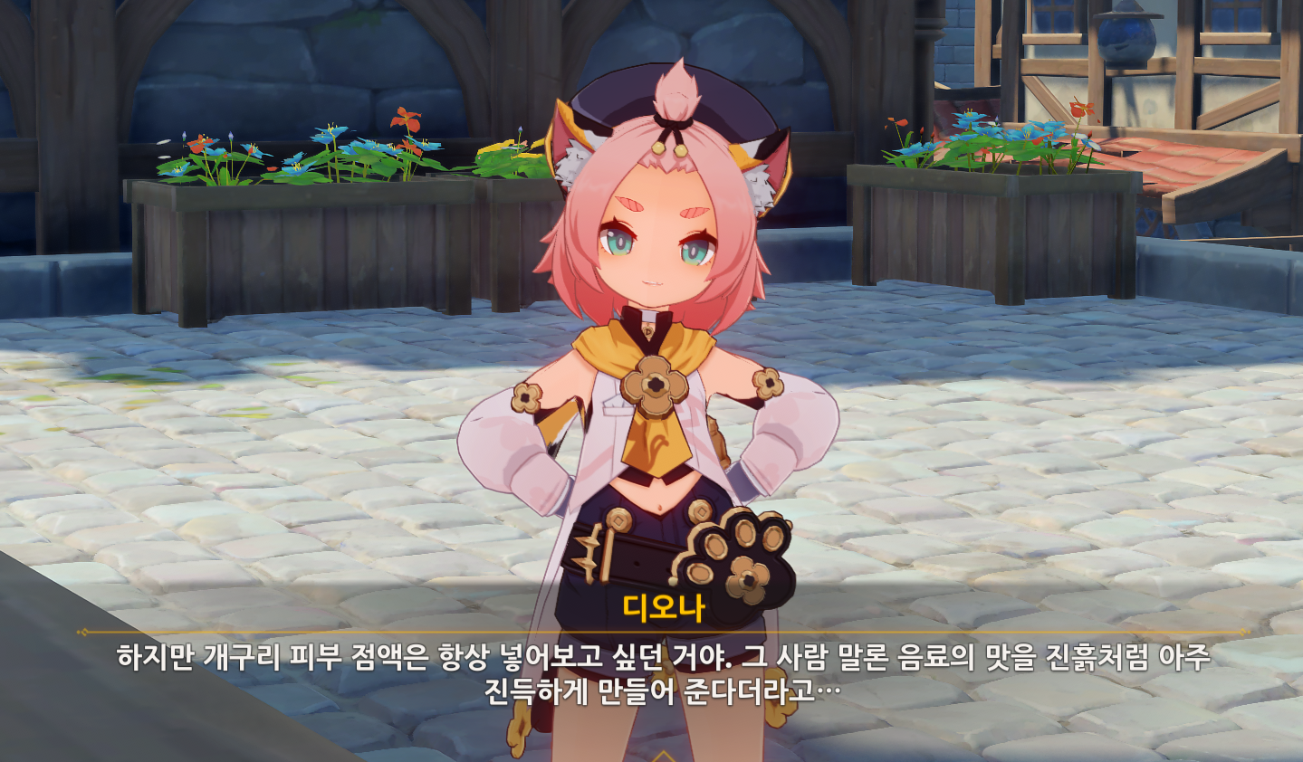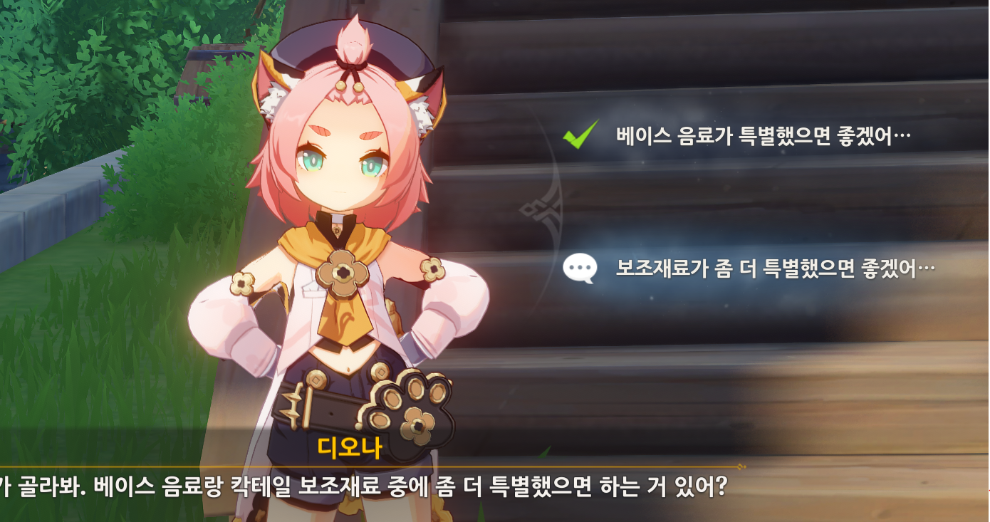 디오나 전설 임무 요약 : 고양이 보러옴 -> 칵테일 or 고양이로 분기 나눠짐
