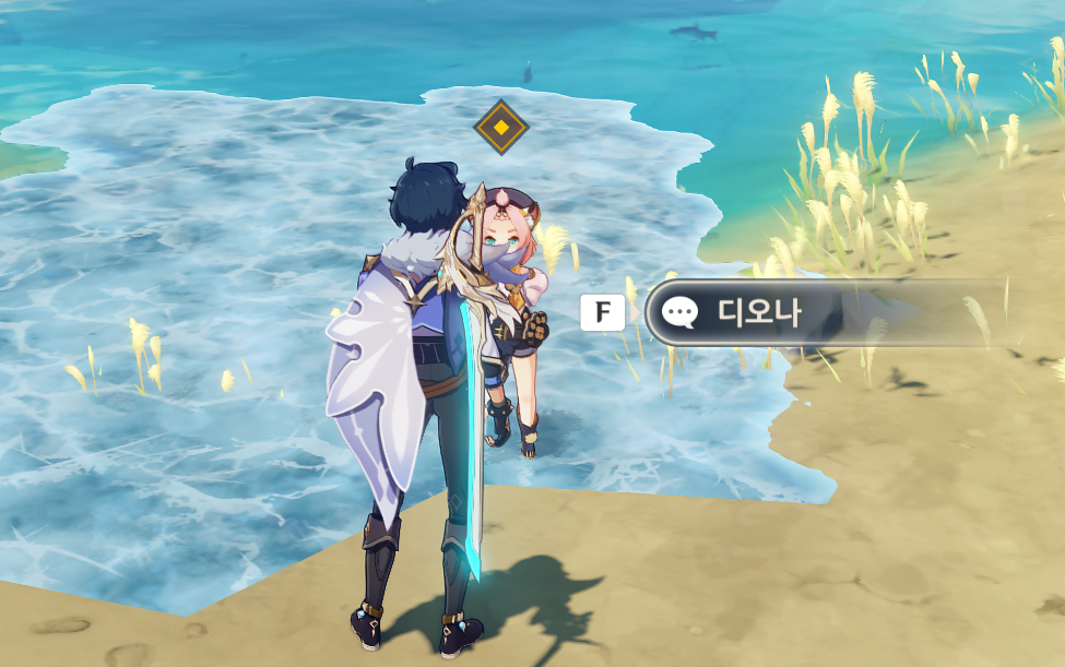 샘물마을 워프 포인트를 이용해서 이동하고, 신선한 생선 살코기 2개를 디오나에게 주면 됩니다.