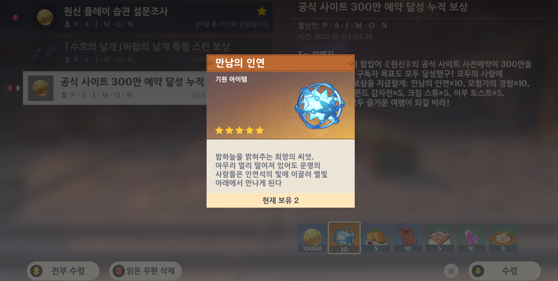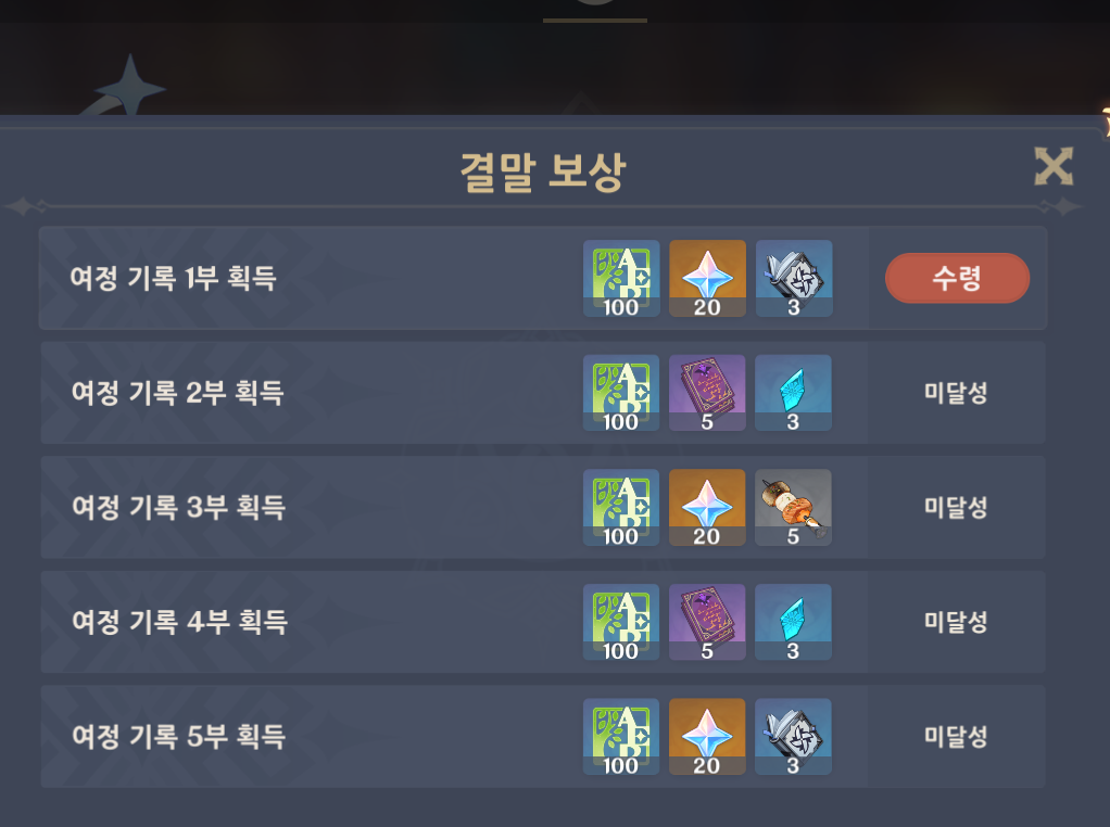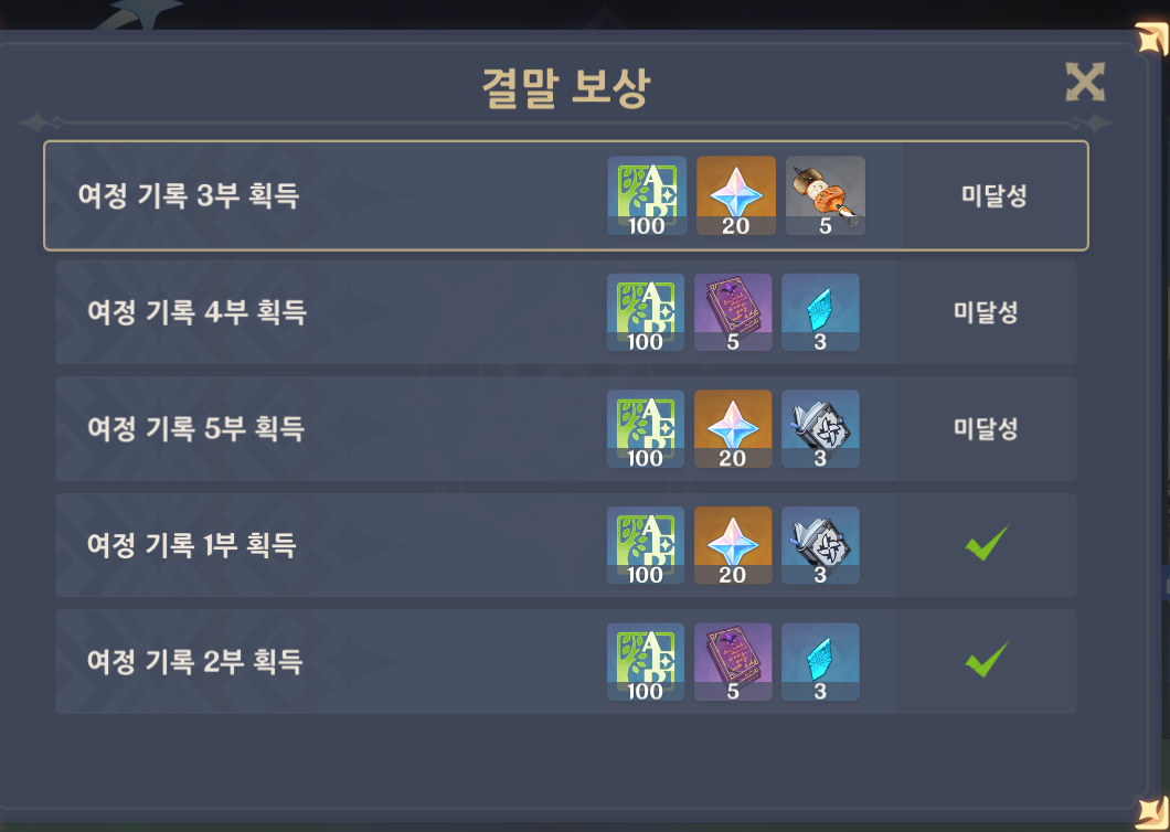결말 보상으로 여정 기록 1부 획득할 수 있습니다.