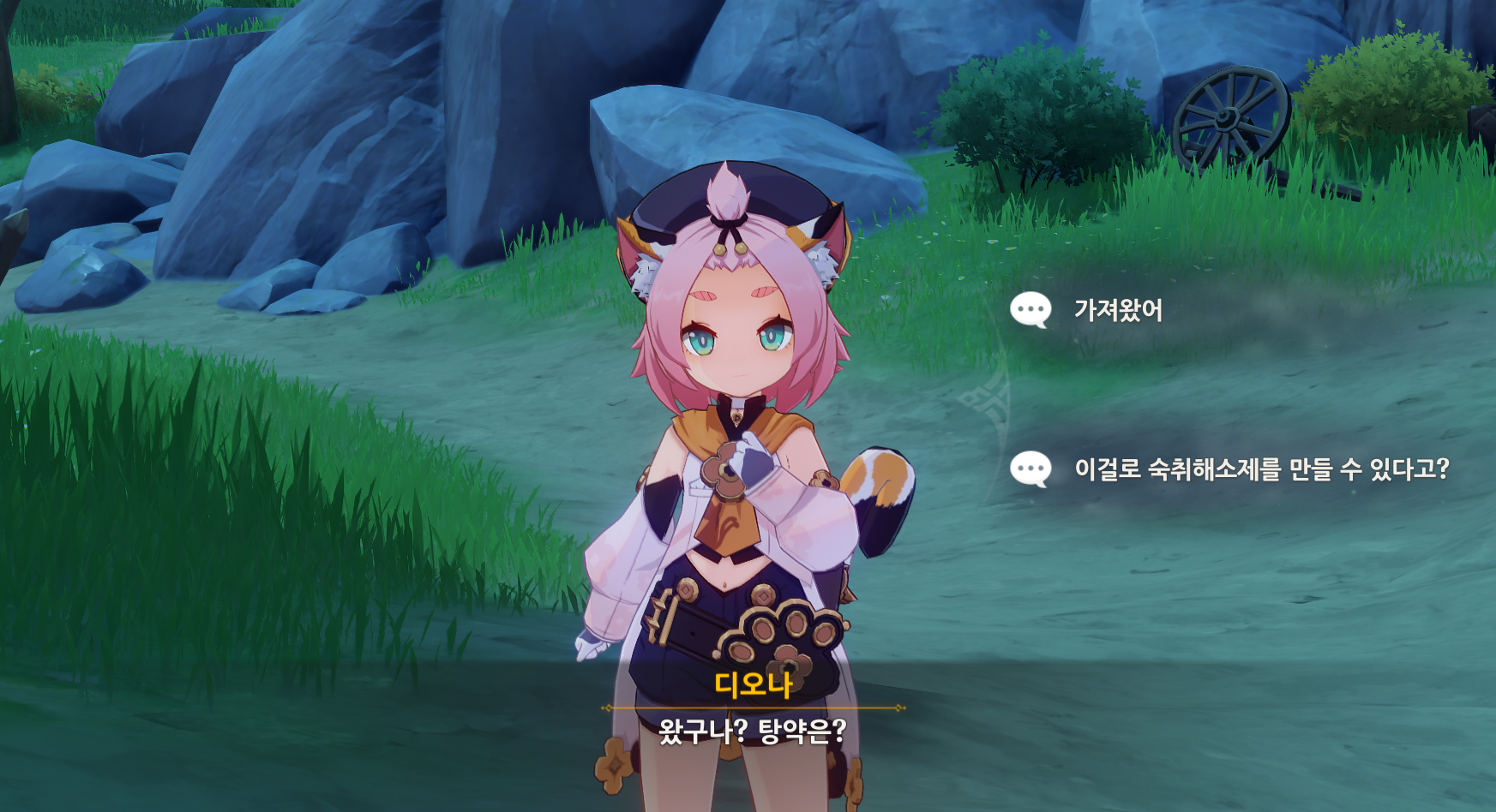 디오나가 숙취해소제 만드는 방법을 알려주면 여행자가 만들어야 함