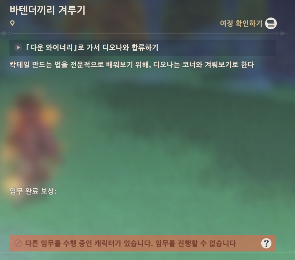다른 임무를 수행 중인 캐릭터가 있습니다. 임무를 진행할 수 없습니다.