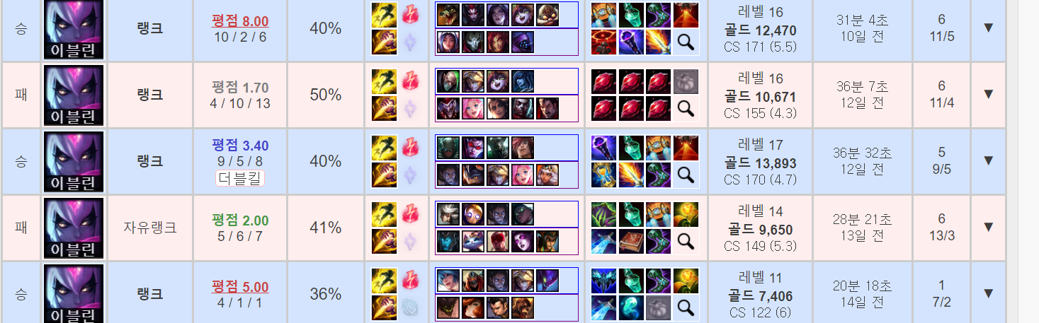 시즌3 준배치고사가 끝날 쯤 MMR 2350점 처음 찍었던 당시 기준으로 프로게이머를 꿈꿨던 과거처럼 아무런 생각 없이, 점수 유지의 개념보다 다이아23 유저면서 솔로랭크 1위가 목표였던 무지성 게이밍이 가능하다면, 시즌11에서 KDA 이블린 올아웃 스킨을 상자에서 받는 순간 최소 200판은 했을 것 같다.