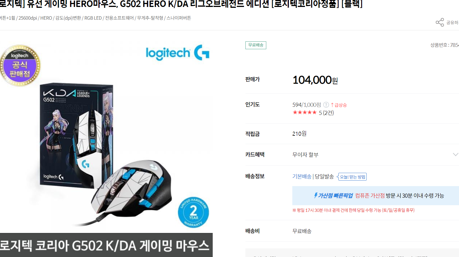 다른 사람보다 상대적으로 정확한 에임에 따라 승부가 결정되는 게임에서 마우스를 가장 중요시 생각하기에 G502는 갖고 싶다