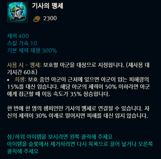 증오의 사슬 체력 600의 가성비가 꽤 괜찮은 것 같습니다.(사실상 루비 수정 4개 +체력 50 + 받는 피해량 강소 30% +강인함 20 ) 사실상 1,200골드의 가치, 롤에서 강인함을 추가시켜주는 아이템은 헤르메스의 발걸음 뿐인데 새로운 강인함. 사실상 룬하고 같이 사용했을 때 1코어 타이밍 큰 체감 될 듯