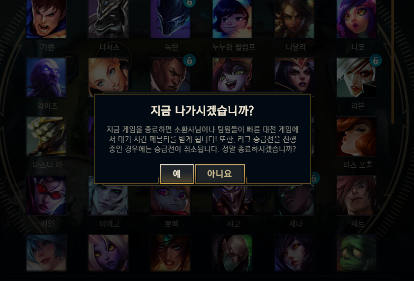 이 방법은 라이엇에서 솔로랭크 닷지 했을 때 내부 매칭 점수인 MMR까지 감소시키기 전까지 계속 통하는 방법입니다.