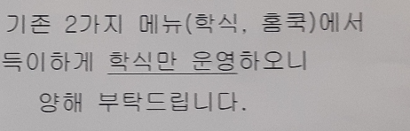 5500원으로 인상되면서 법식, 참이슬식당, 기식 가격의 상이함이 사실상 없어졌다. 나의 소중한 중앙대 친구인 찰리한테 메뉴를 물어보고, 그나마 맛있는거 하나 선택하면 될 것 같다.